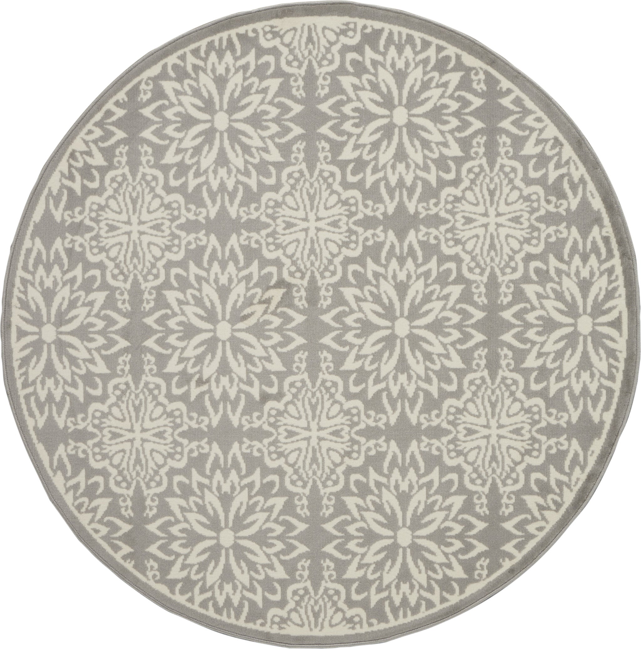 Add great coloration and comfortable texture to your space with this 5' gray round floral power loom...