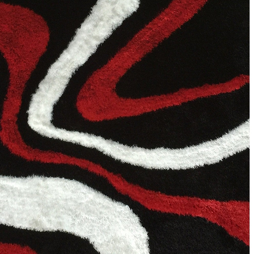 Set an inviting tone in your space with this 5-foot x 7-foot black and red shag hand...