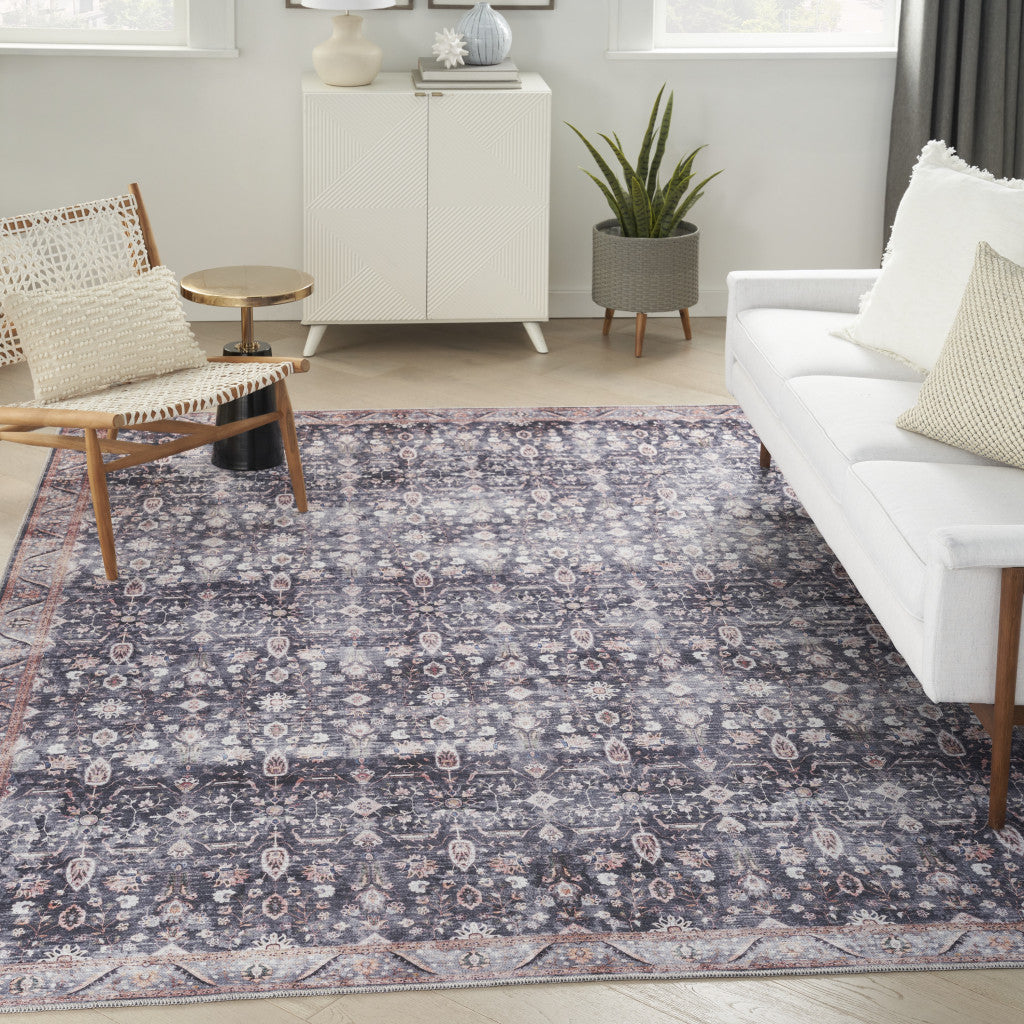 5' x 7' Blue and Ivory Oriental Power Loom Distressed Washable Non Skid Area Rug