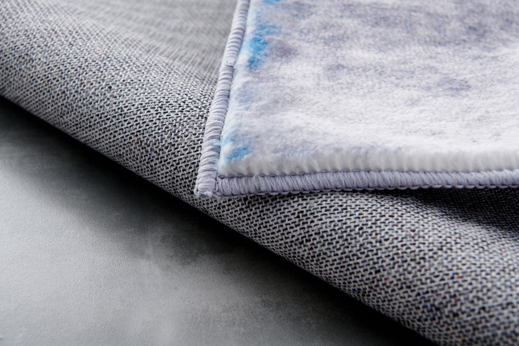 This 5-foot x 7-foot blue and yellow abstract printed washable non skid area rug, is a great...