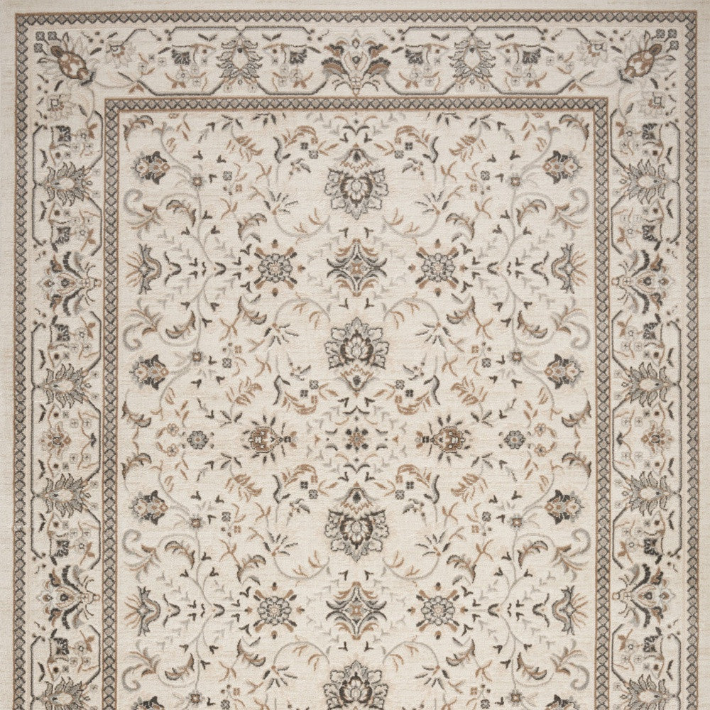 Add some artistry to your room with this 5-foot x 7-foot cream floral distressed area rug. This...