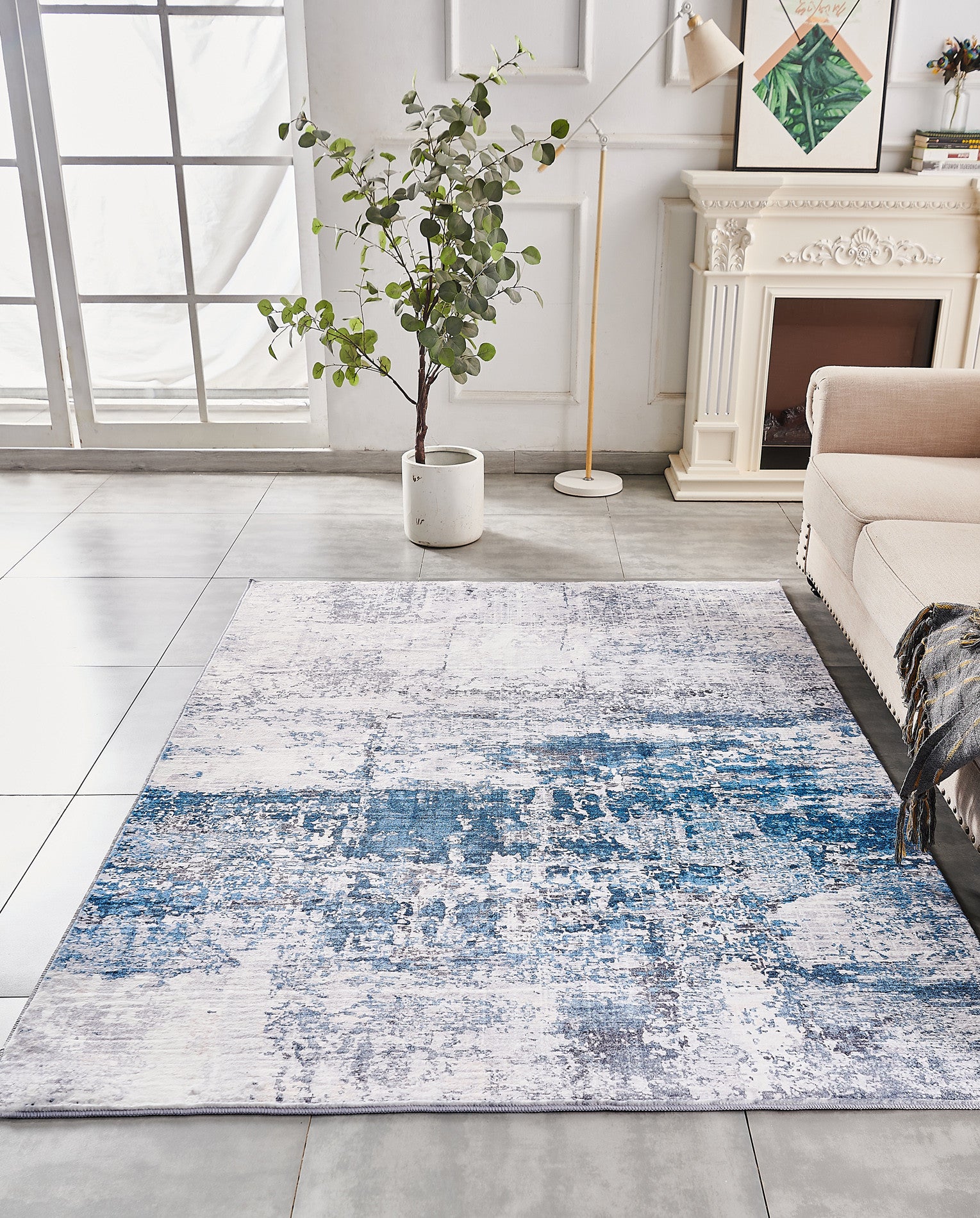 5' x 7' Gray and Blue Abstract Printed Washable Non Skid Area Rug