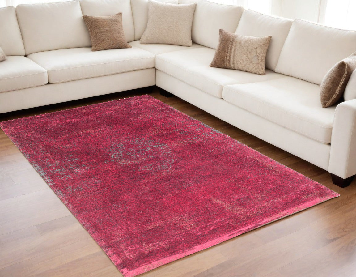 5' x 7' Gray and Pink Medallion Non Skid Area Rug