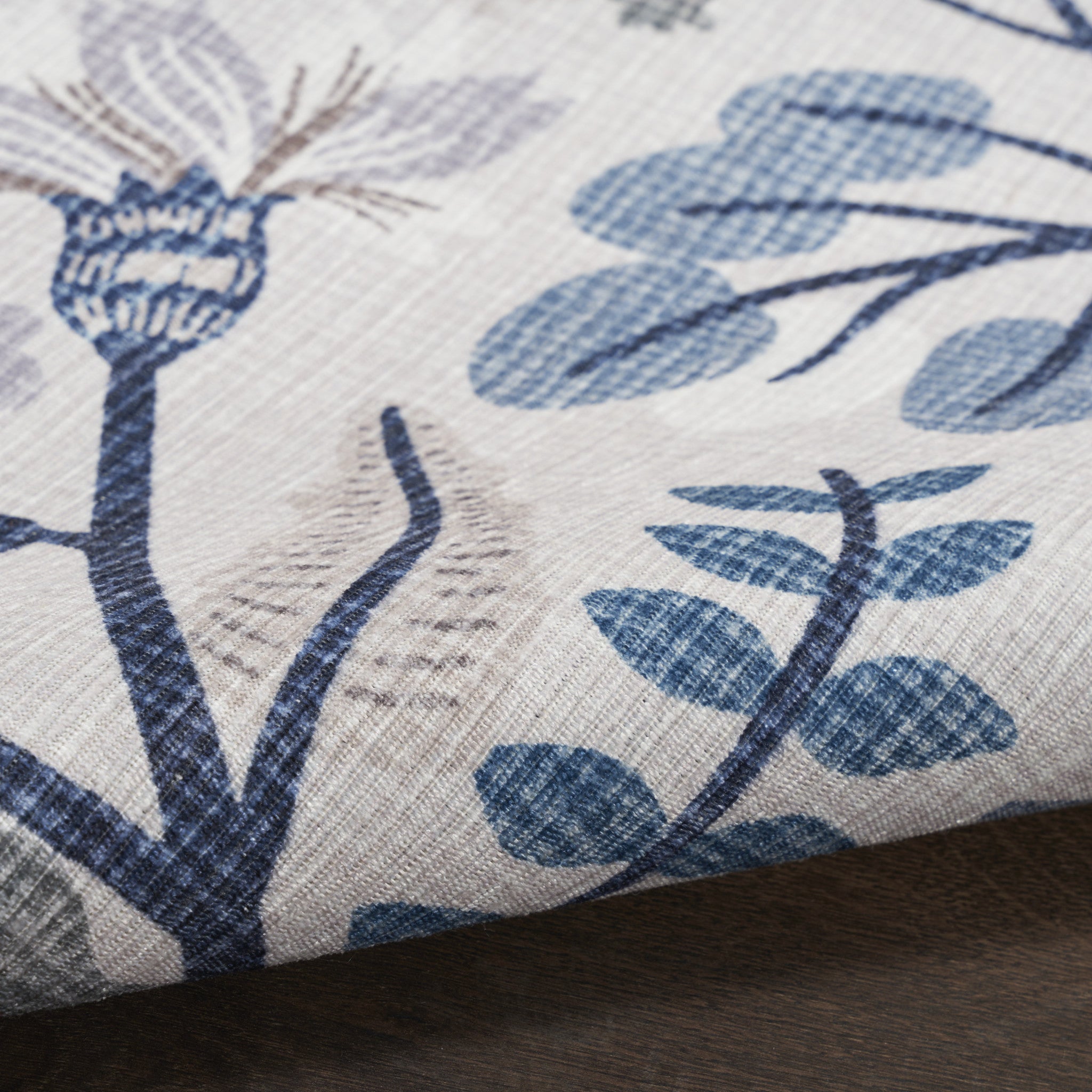 5' x 7' Ivory Green and Red Floral Power Loom Washable Non Skid Area Rug