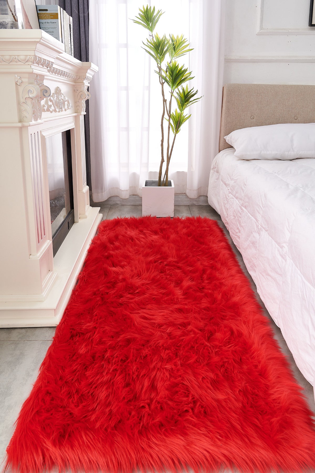 5' x 7' Red Faux Fur Shag Sheepskin Washable Area Rug