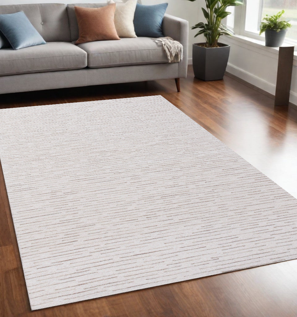 5' x 8' Beige and Ivory Wool Striped Hand Tufted Area Rug