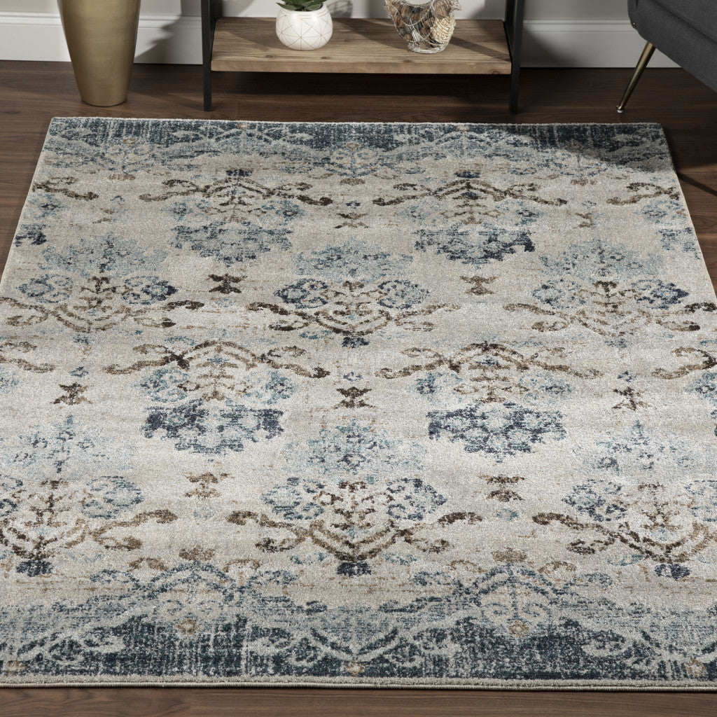 5' x 8' Blue and Ivory Oriental Area Rug