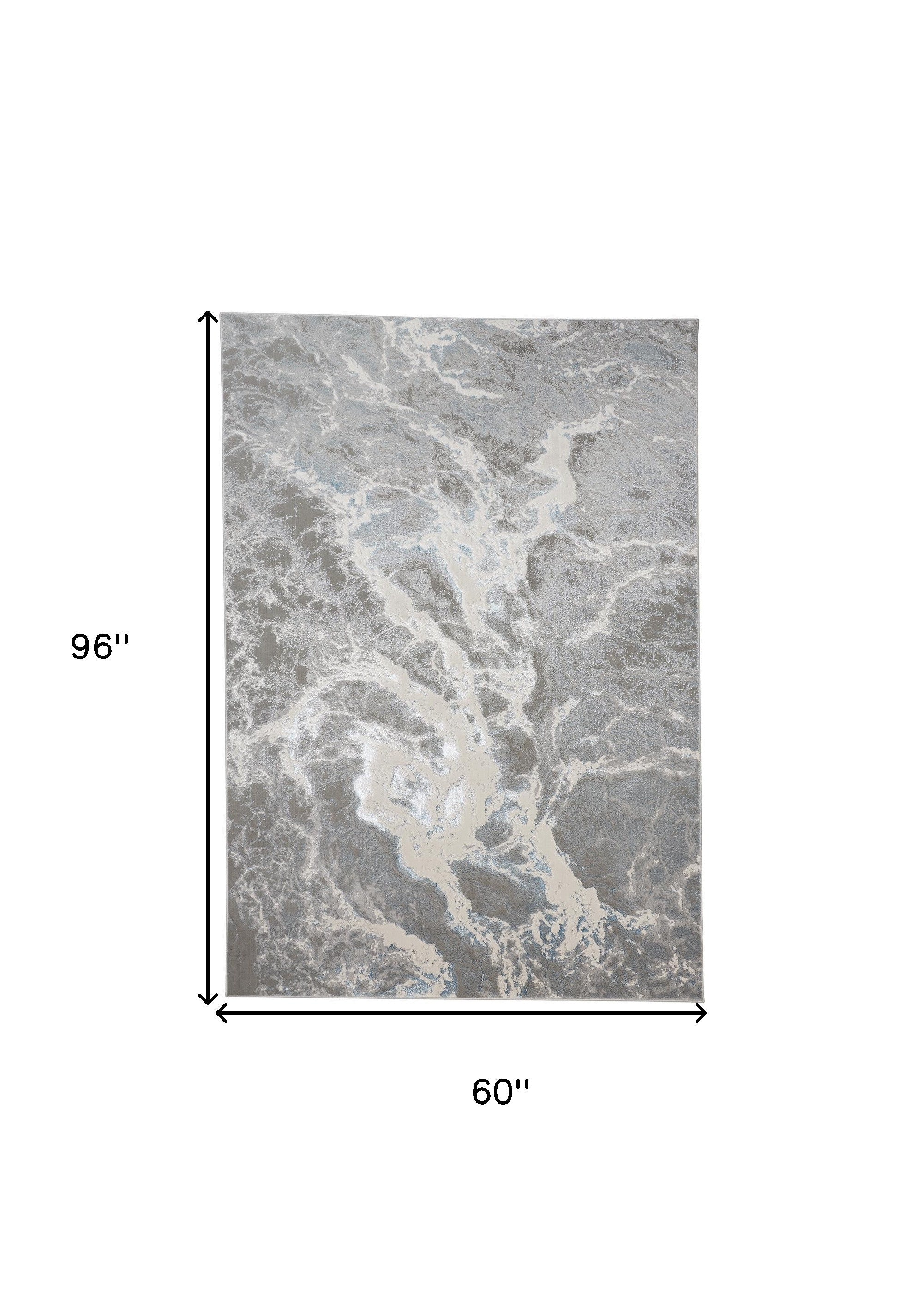 5' x 8' Gray and Ivory Abstract Power Loom Area Rug