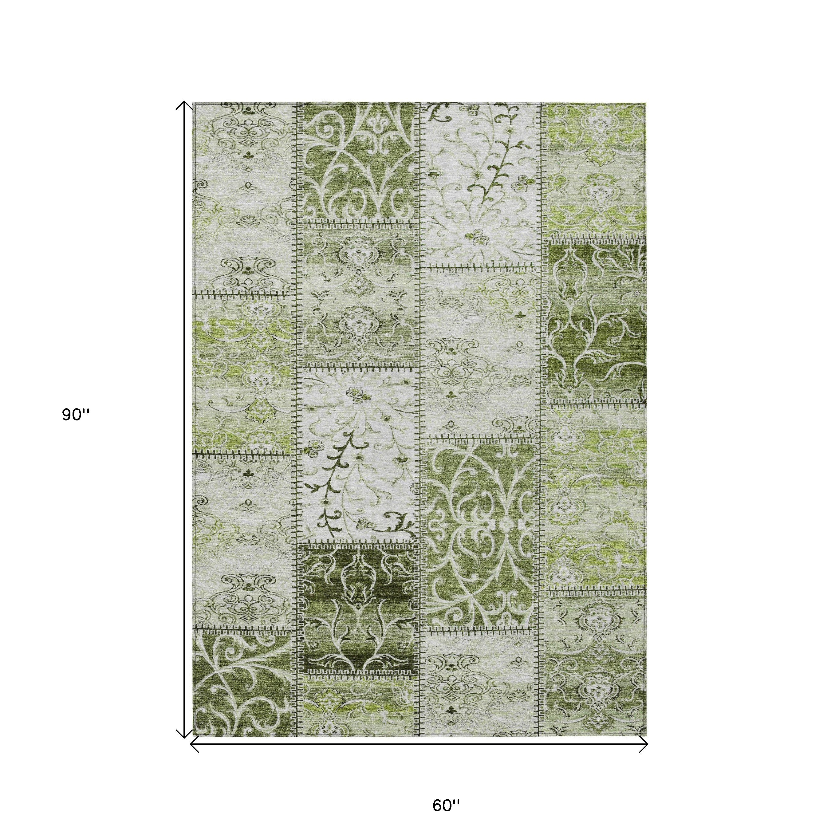 5' X 8' Green Patchwork Washable Non Skid Indoor Outdoor Area Rug