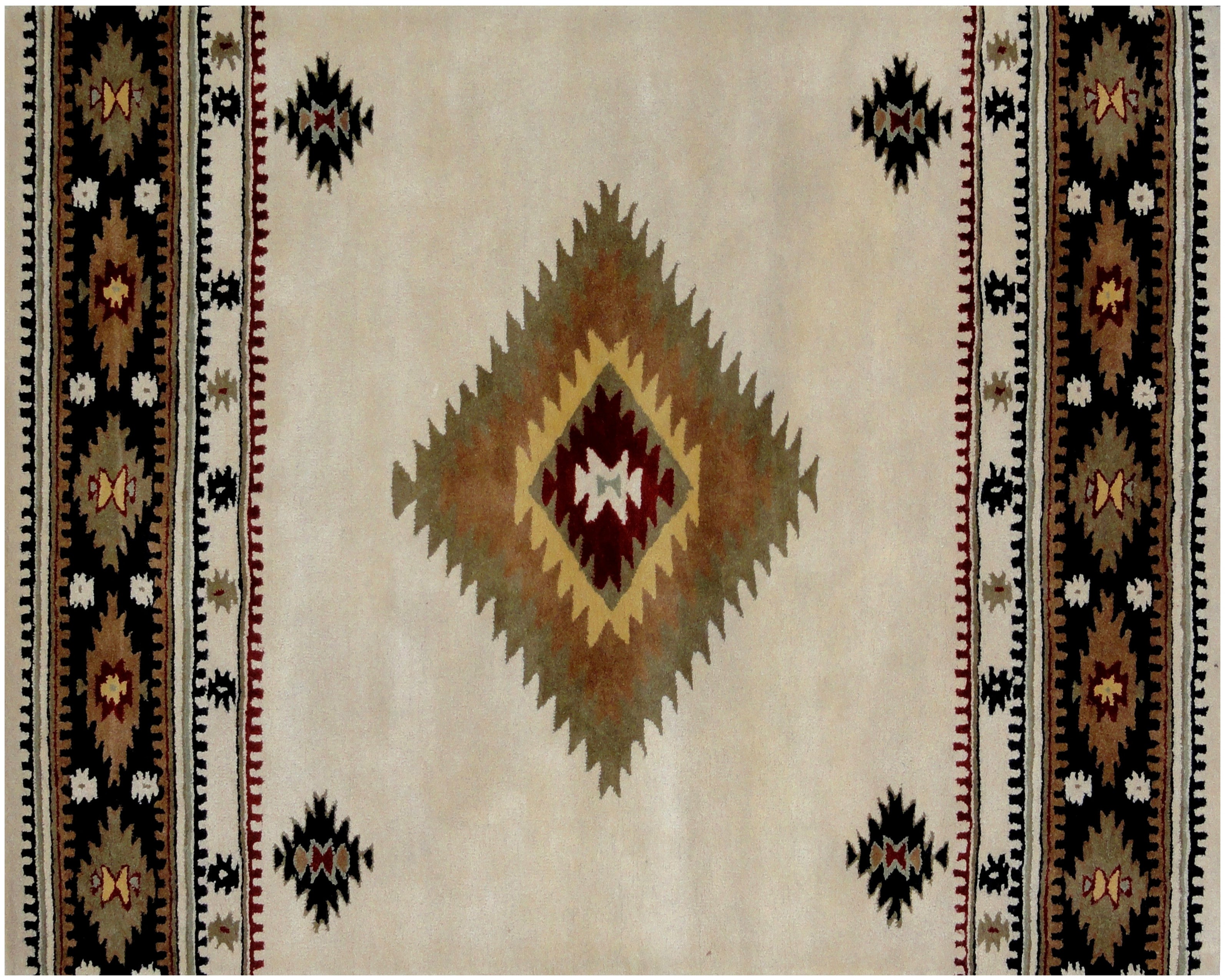 5' x 8' Ivory and Black Southwestern Hand Tufted Non Skid Area Rug
