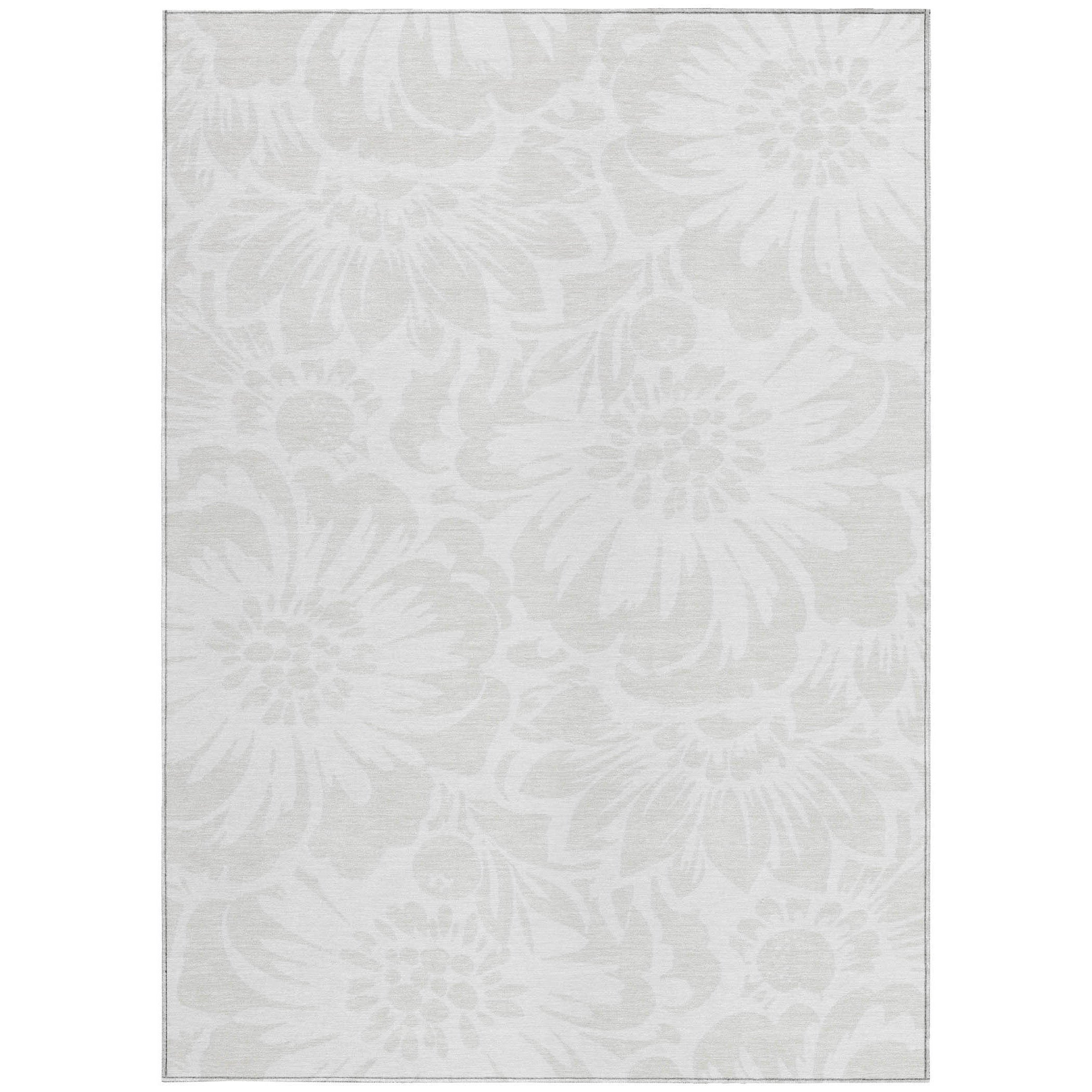 Add some artistry to your room with this 5-foot x 8-foot ivory floral washable stain resistant non...