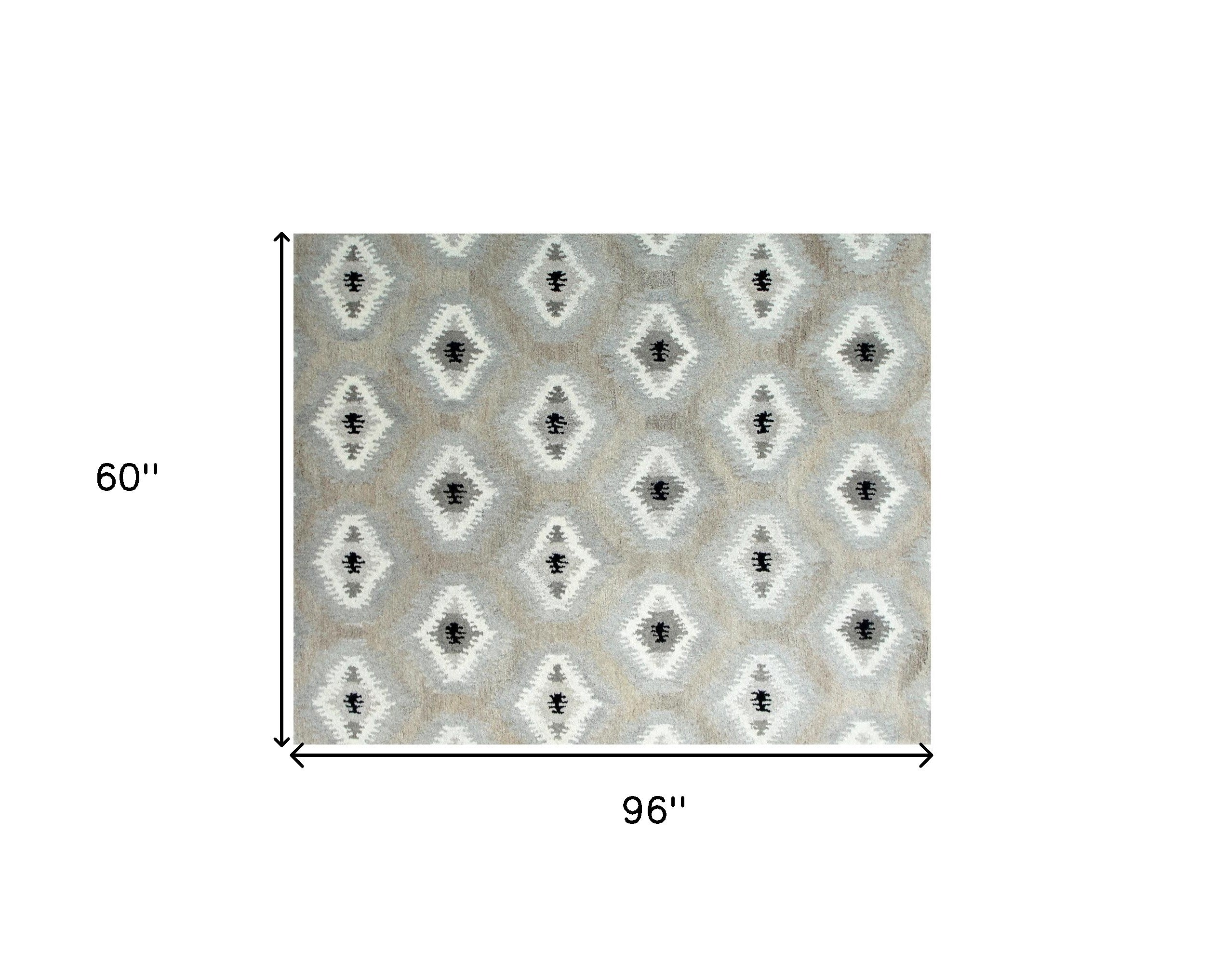 5' x 8' Natural Wool Southwestern Hand Tufted Non Skid Area Rug