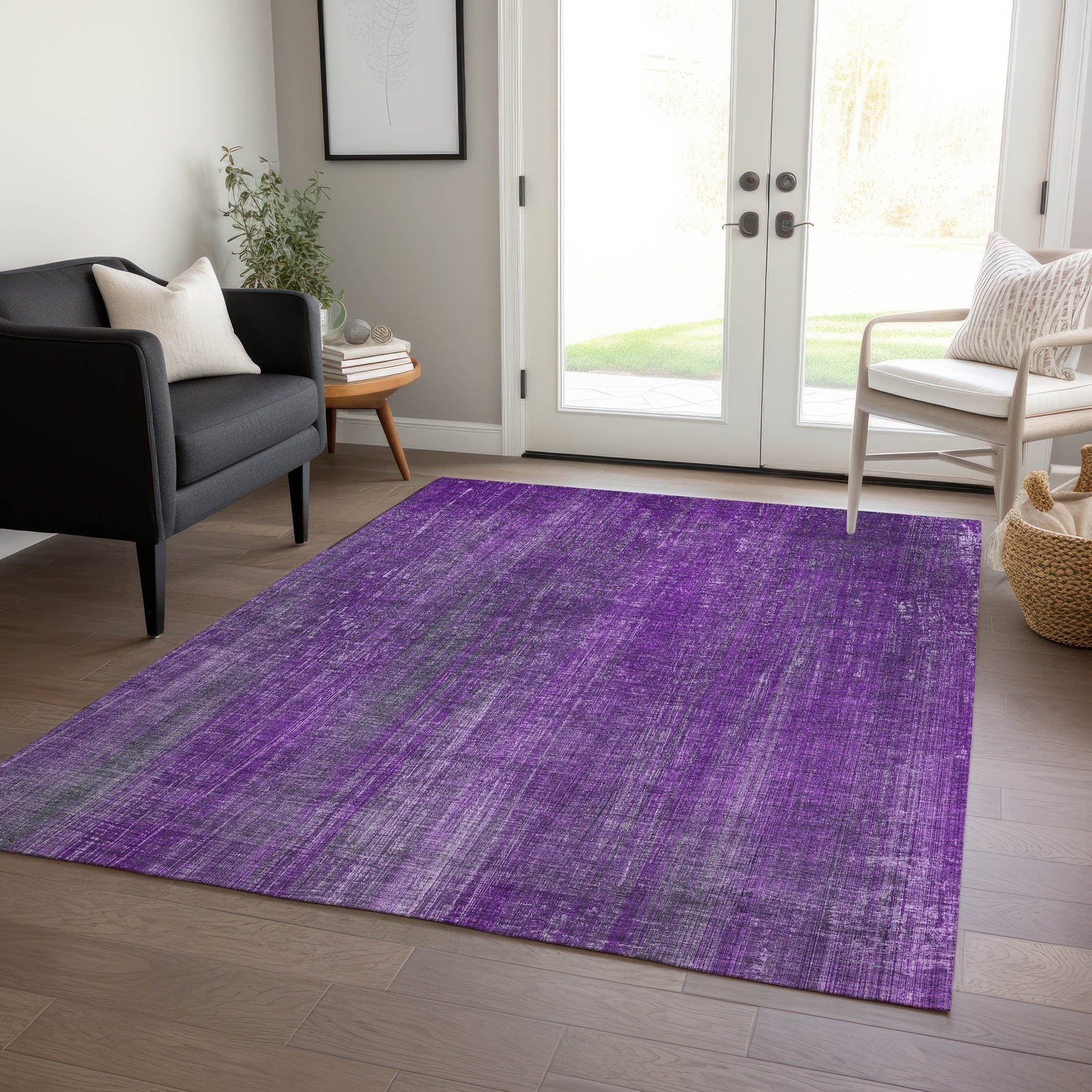 Add some artistry to your room with this 5-foot x 8-foot purple striped washable stain resistant non...