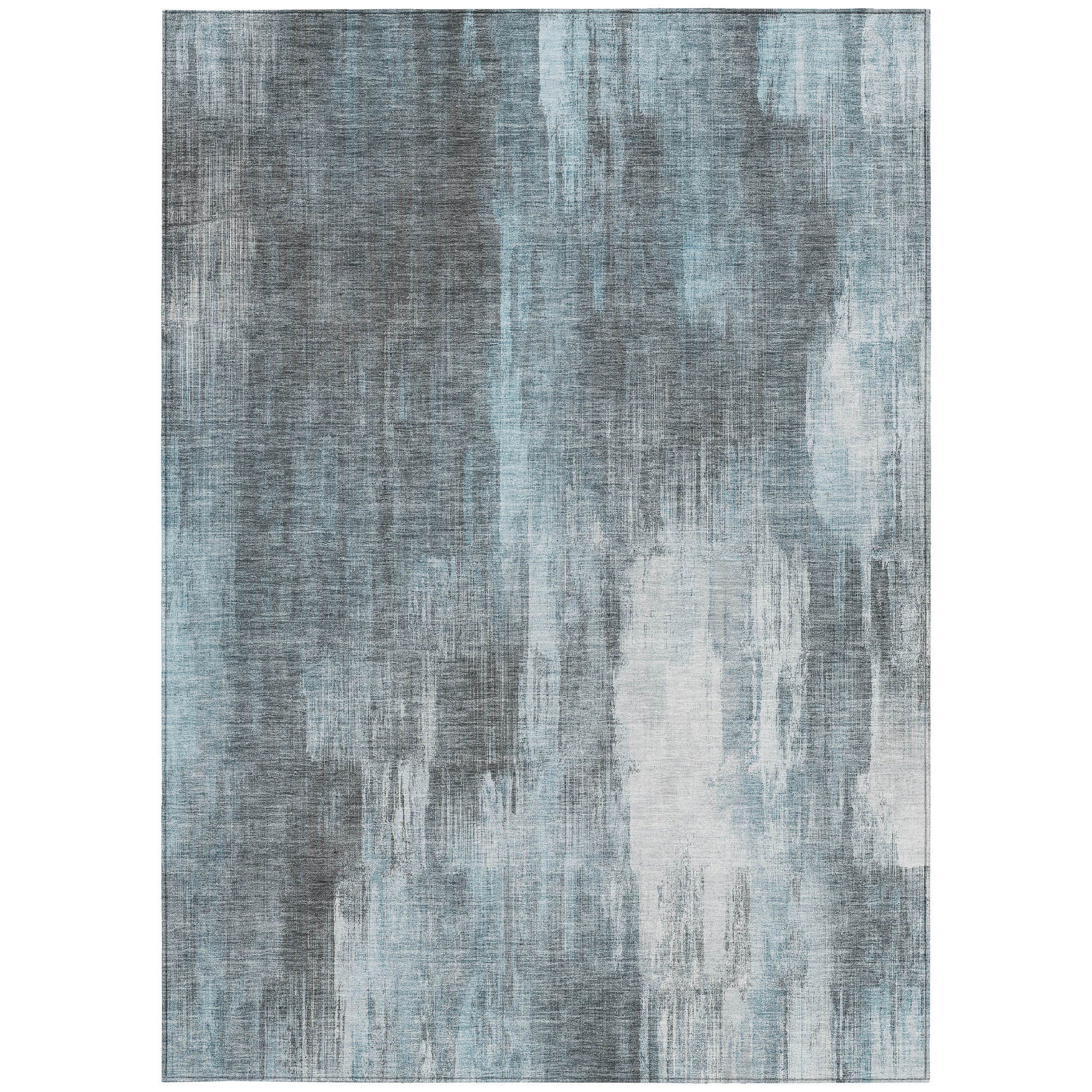 5' X 8' Teal Abstract Washable Non Skid Indoor Outdoor Area Rug