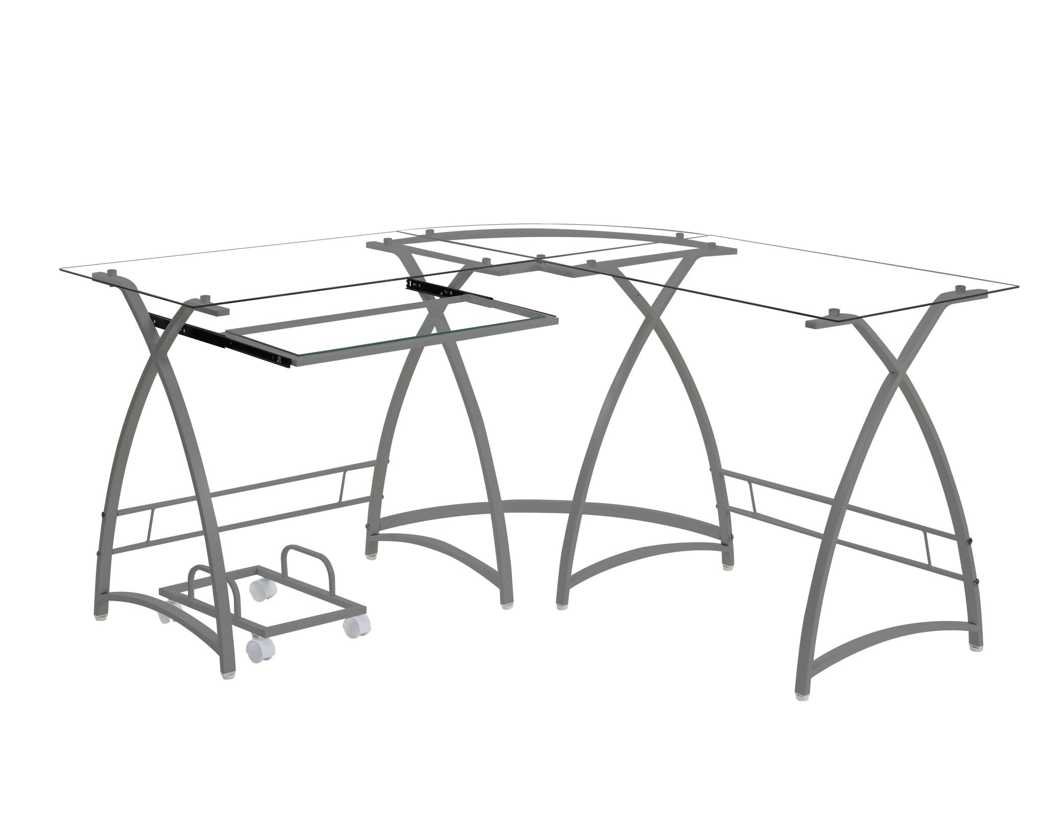 Look like an executive when you add this 51-inch clear and gray glass l shape computer desk...