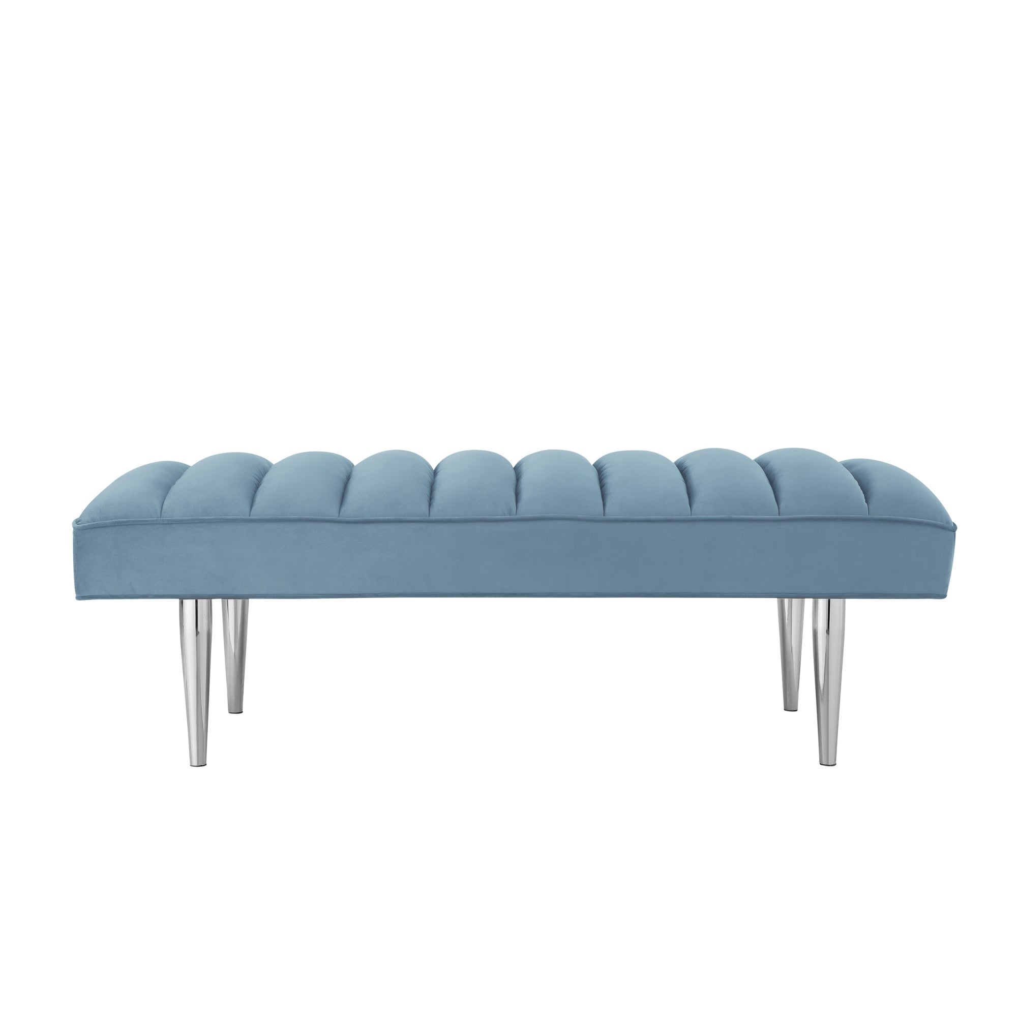 Distinctive in style the 53" blue and silver upholstered velvet bench radiates a versatile charm. The blue...