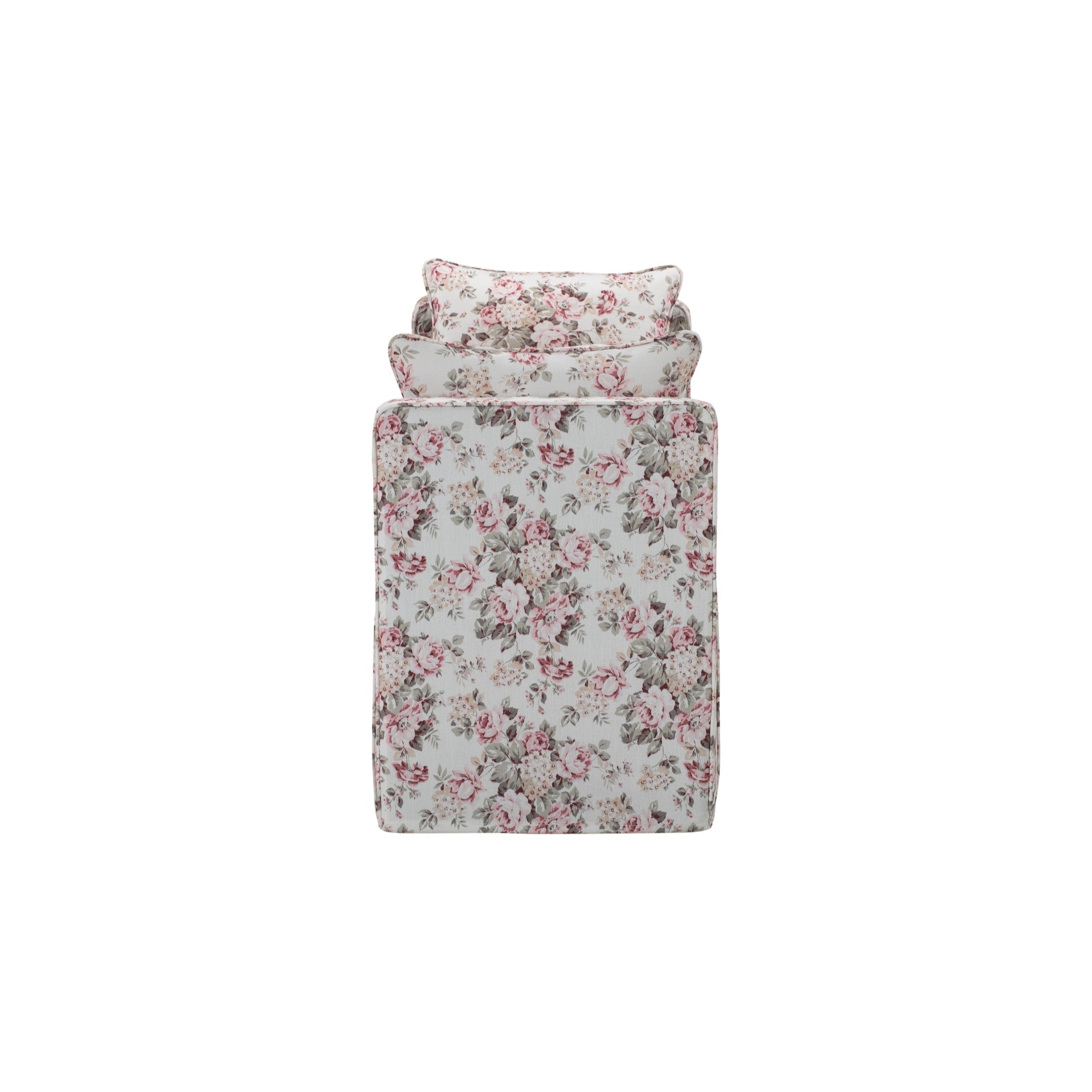 53" Red And Black Upholstered Linen Floral Bench