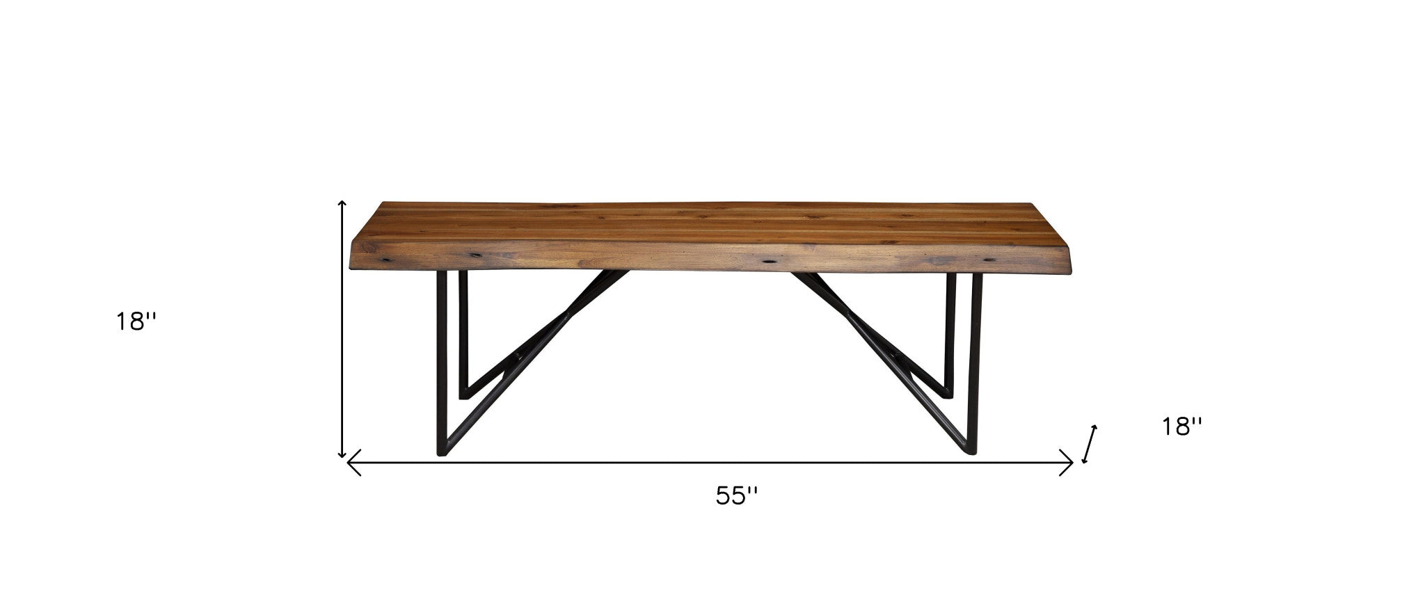 55" Brown and Black Solid Wood Dining Bench
