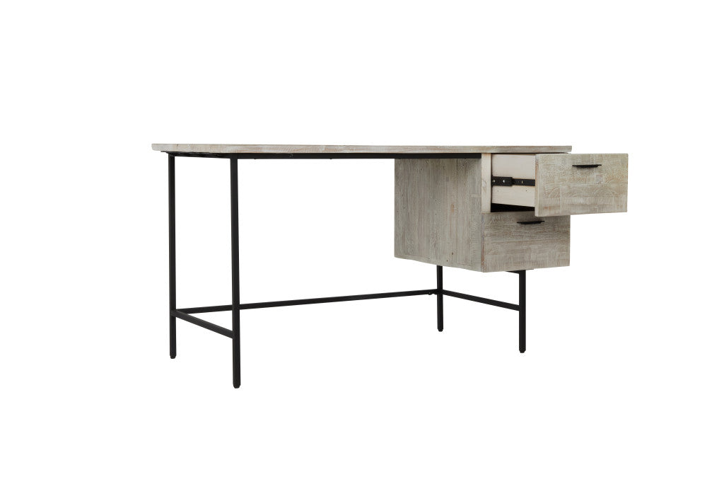 55" Ivory And Black Pine Solid Wood Writing Desk With Two Drawers