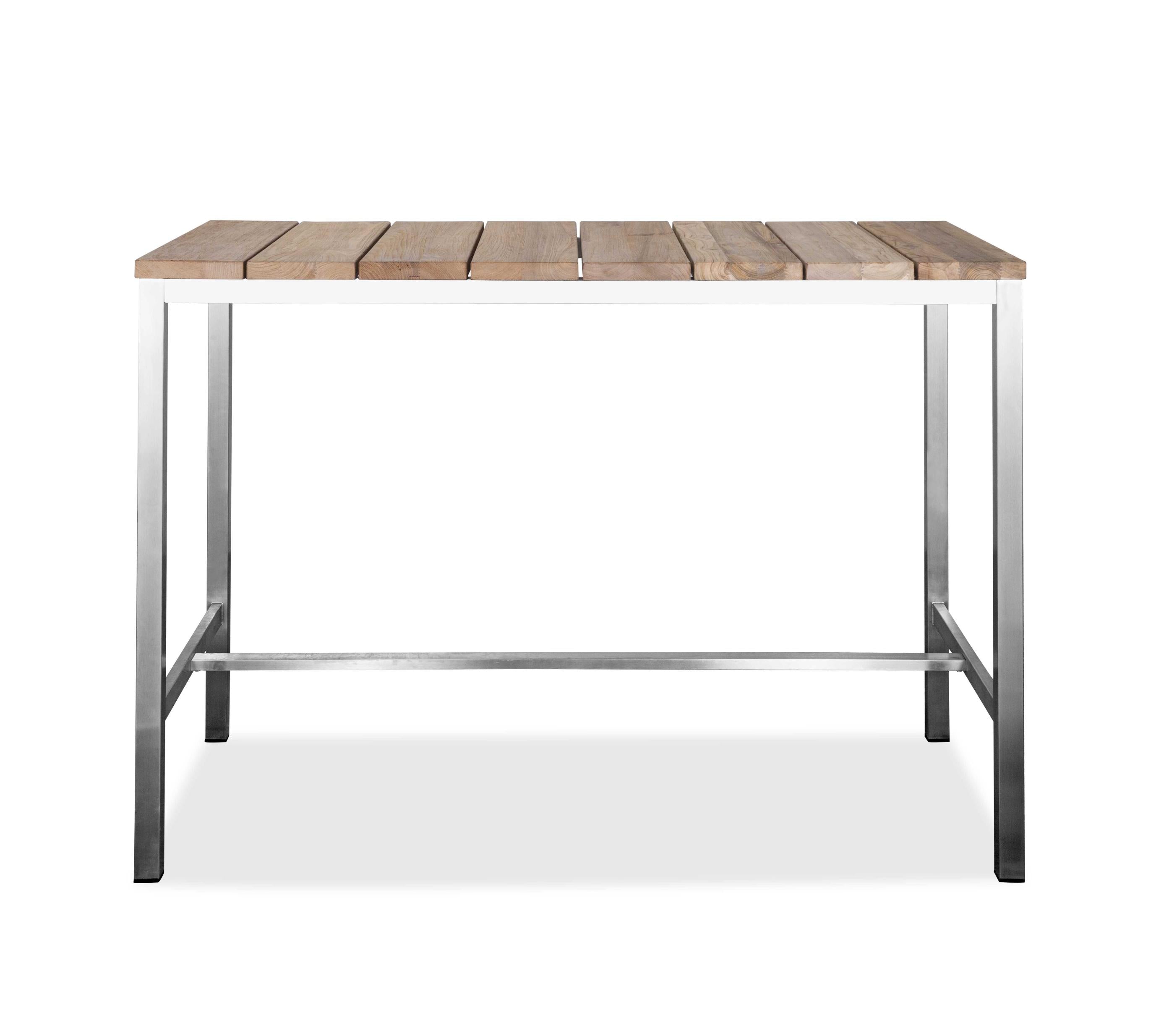 55 X 27 X 42 Teak Wood & Stainless Steel Bar Table