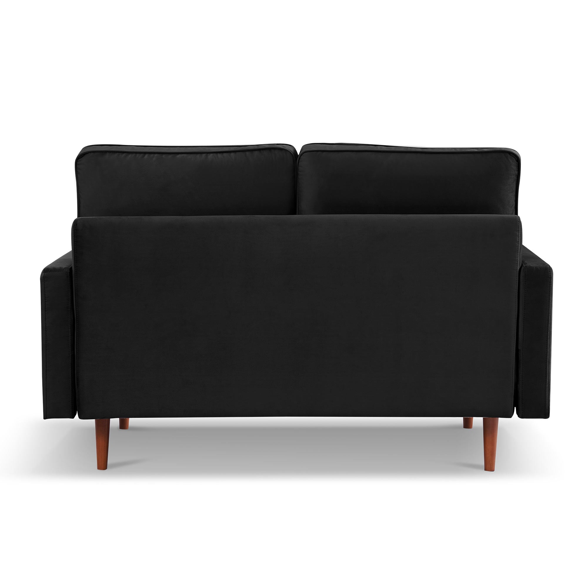 57" Black And Dark Brown Velvet Loveseat and Toss Pillows