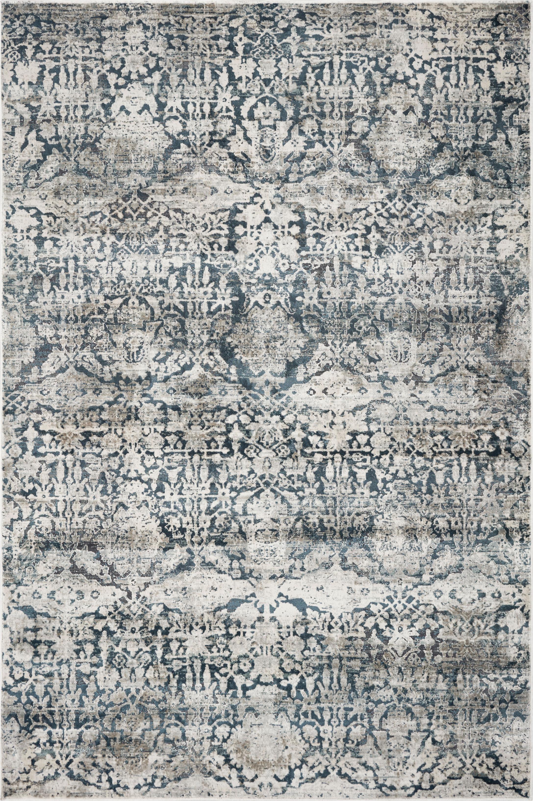5'X8' Teal Machine Woven Distressed Floral Traditional Indoor Area Rug