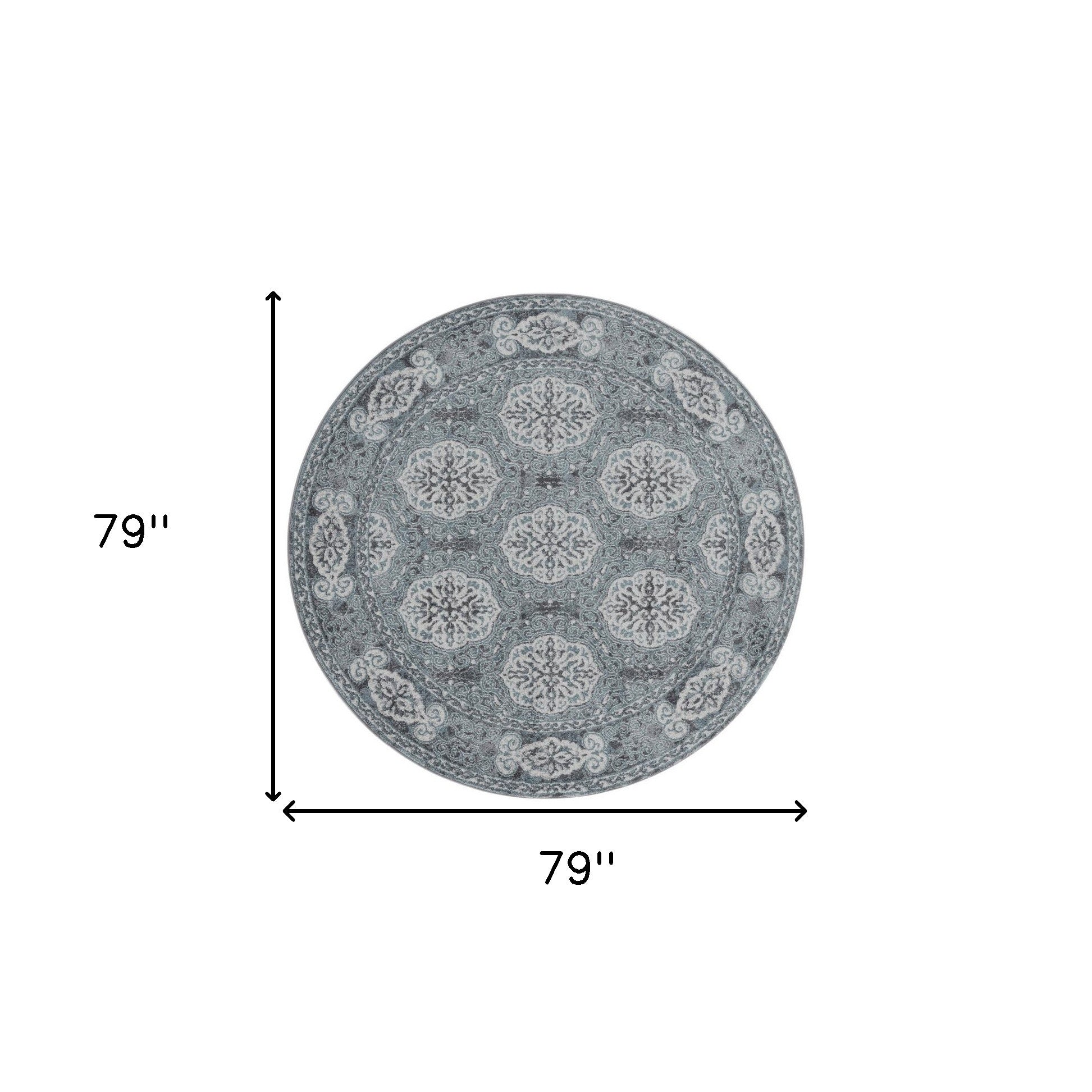 6' Blue Round Medallion Power Loom Area Rug