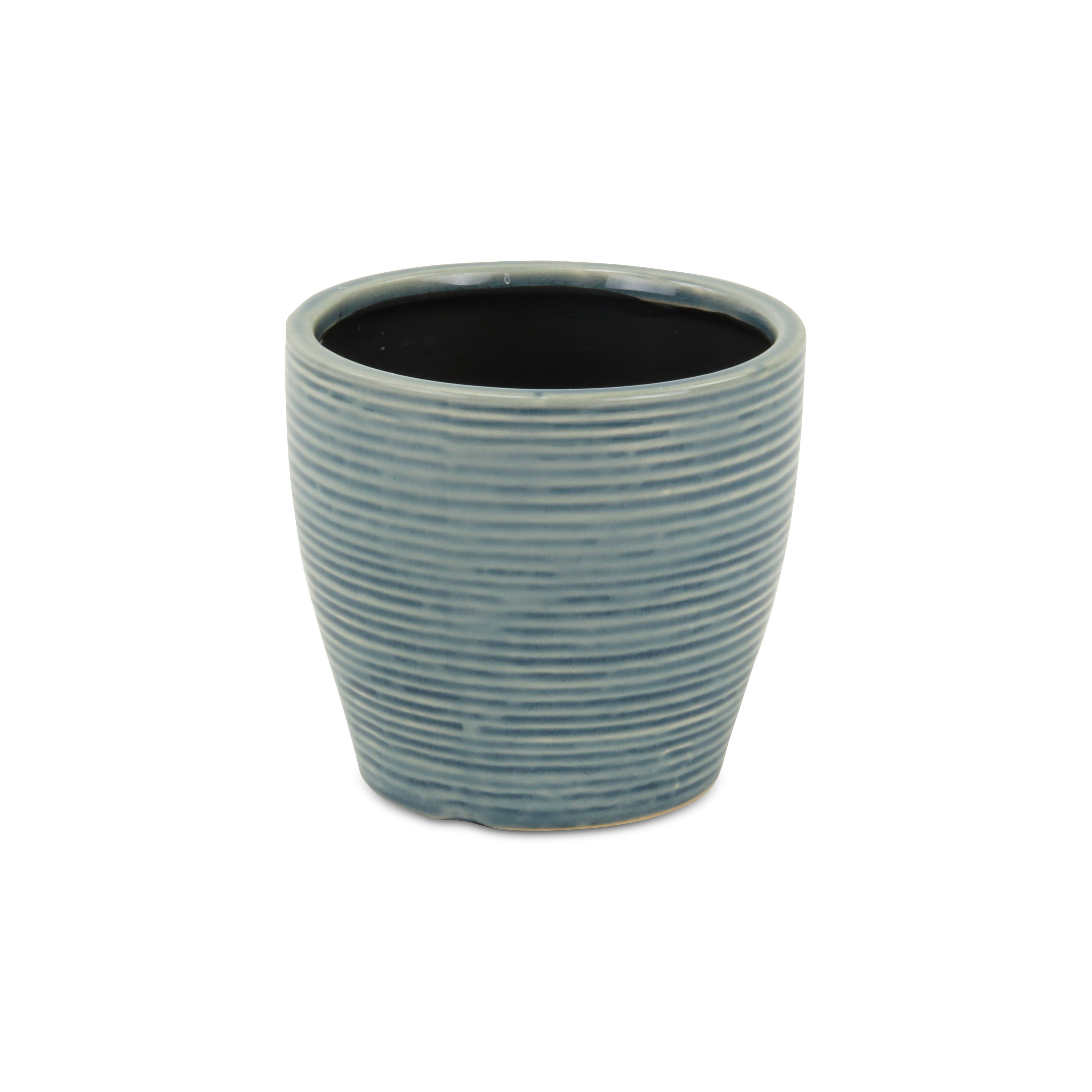 6" Blue Striped Ceramic Indoor Outdoor Round Pot Planter