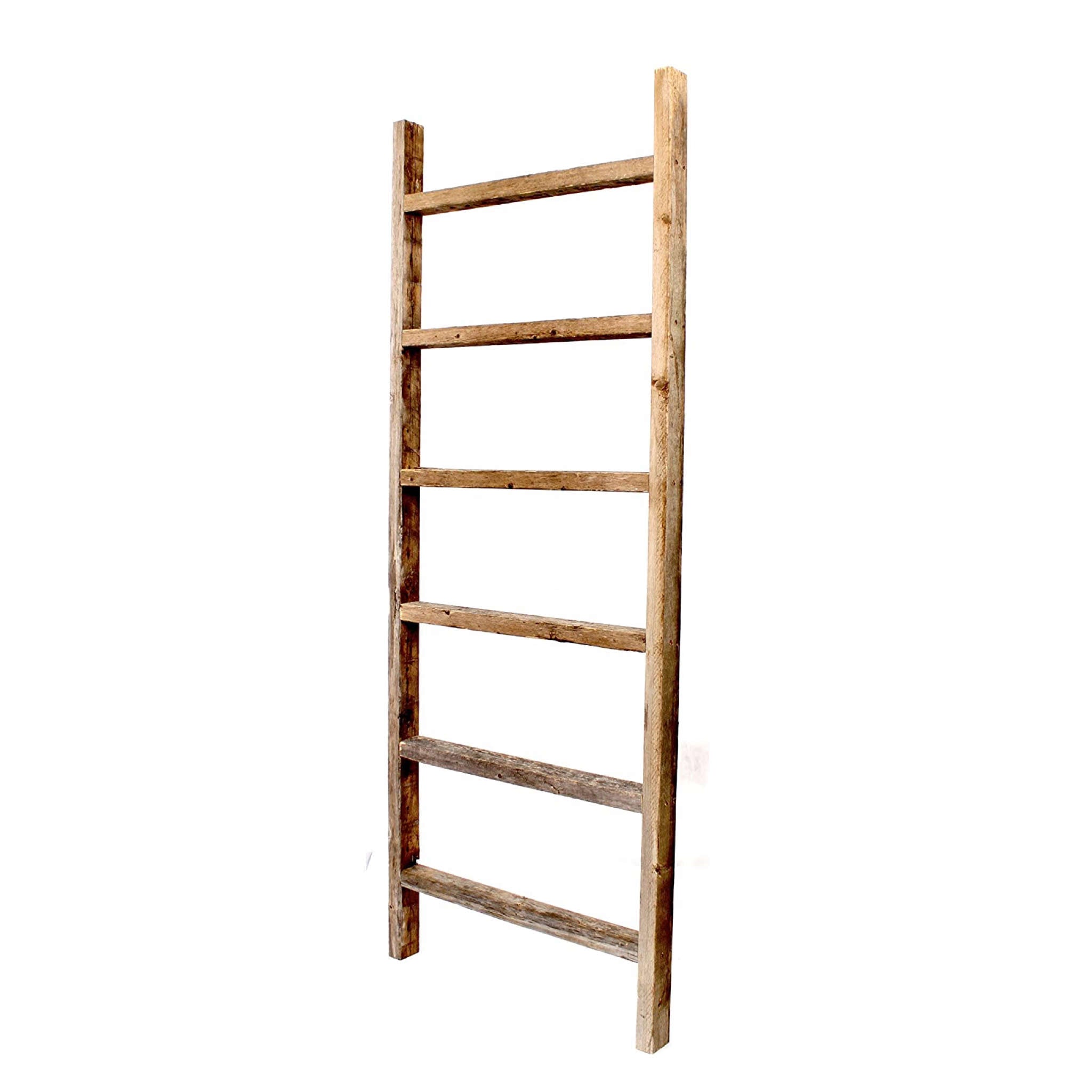 6 Step Rustic Weathered Grey Wood Ladder Shelf