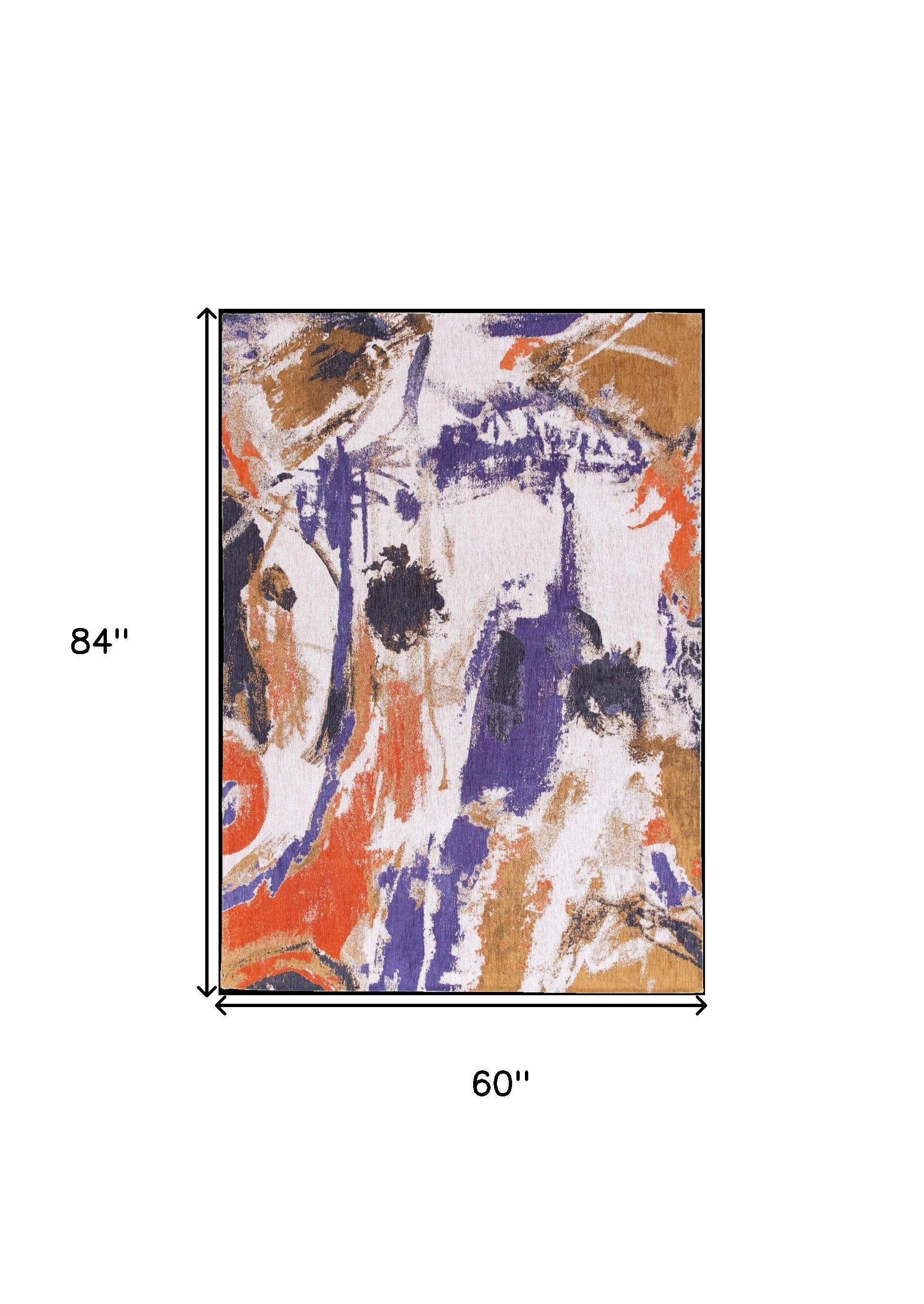 6' X 8' Purple and White Abstract Non Skid Area Rug
