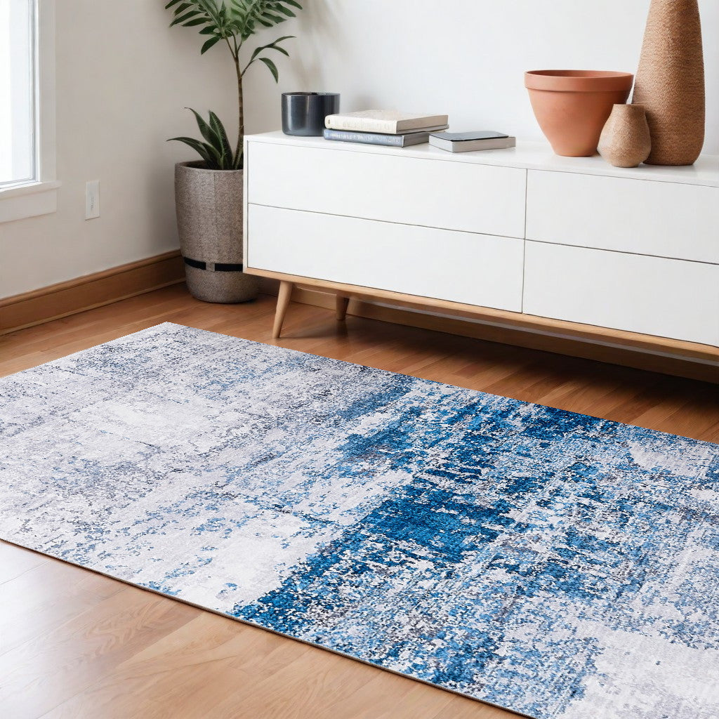 6' x 9' Gray and Blue Abstract Printed Washable Non Skid Area Rug
