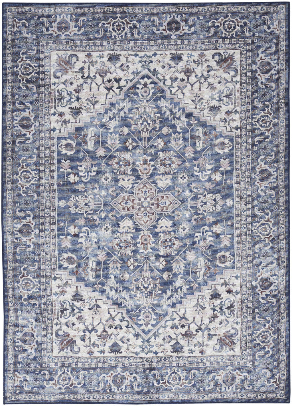 6' X 9' Gray Floral Power Loom Distressed Washable Area Rug