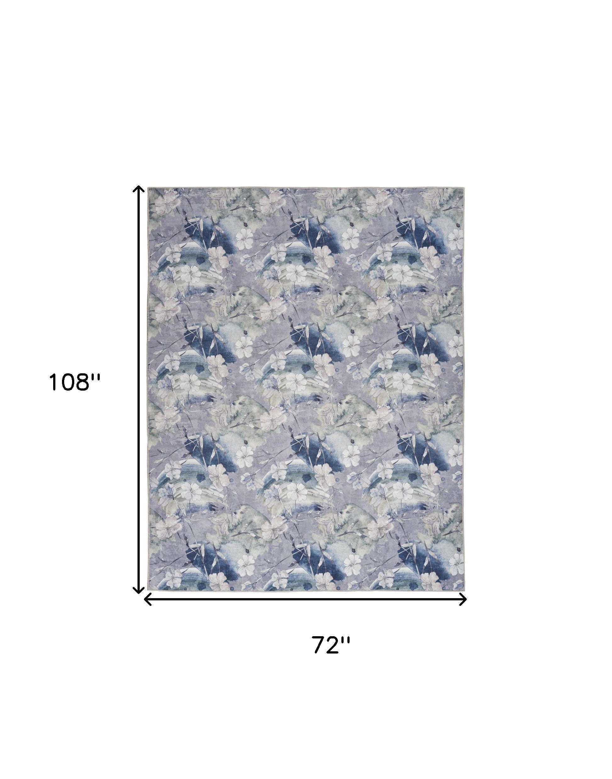 6' x 9' Ivory Blue and Gray Floral Power Loom Washable Non Skid Area Rug