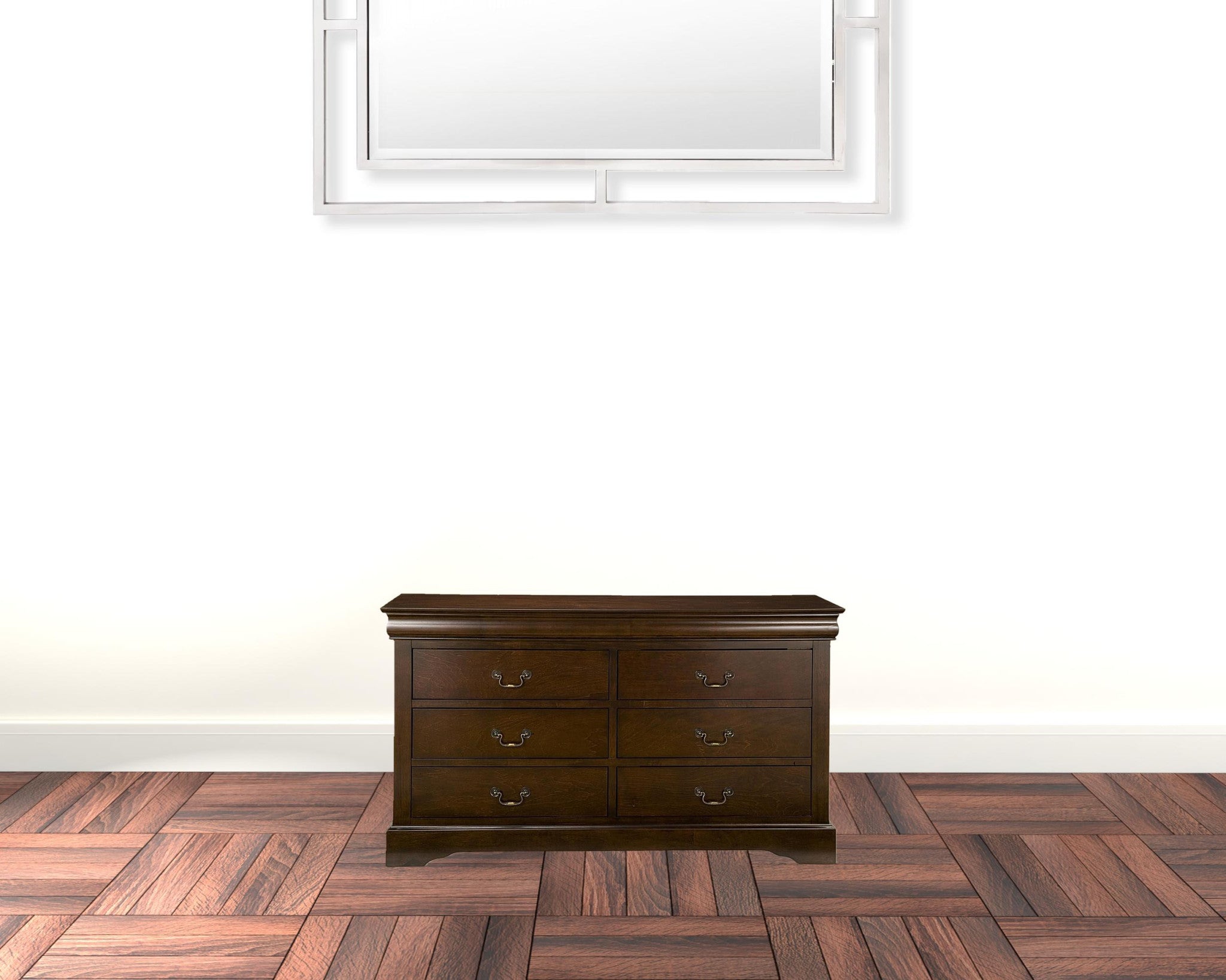 60" Brown Solid Wood Six Drawer Double Dresser