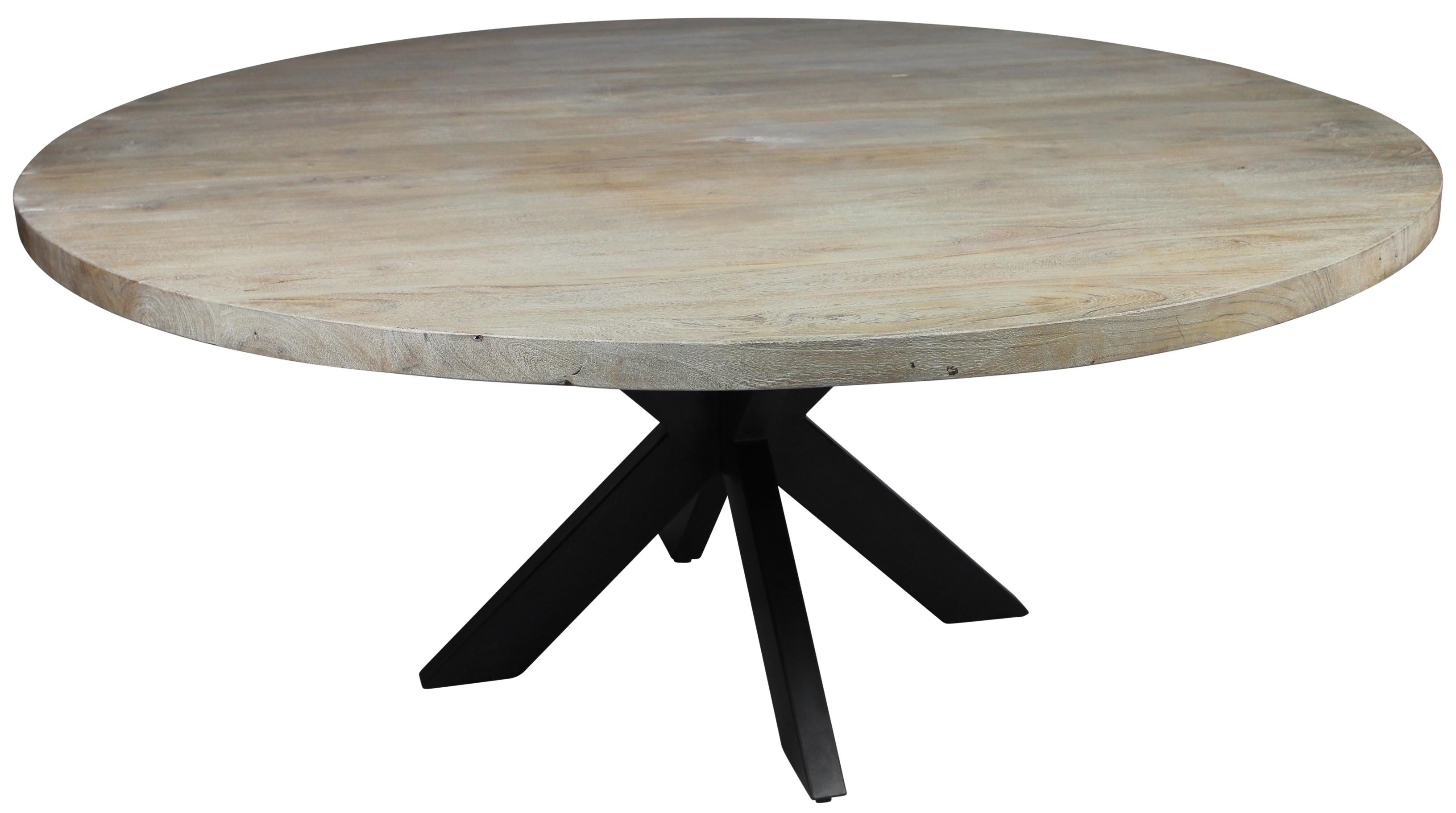 Enjoy making memories around this gorgeous 60" gray beige and black solid wood and iron dining table....