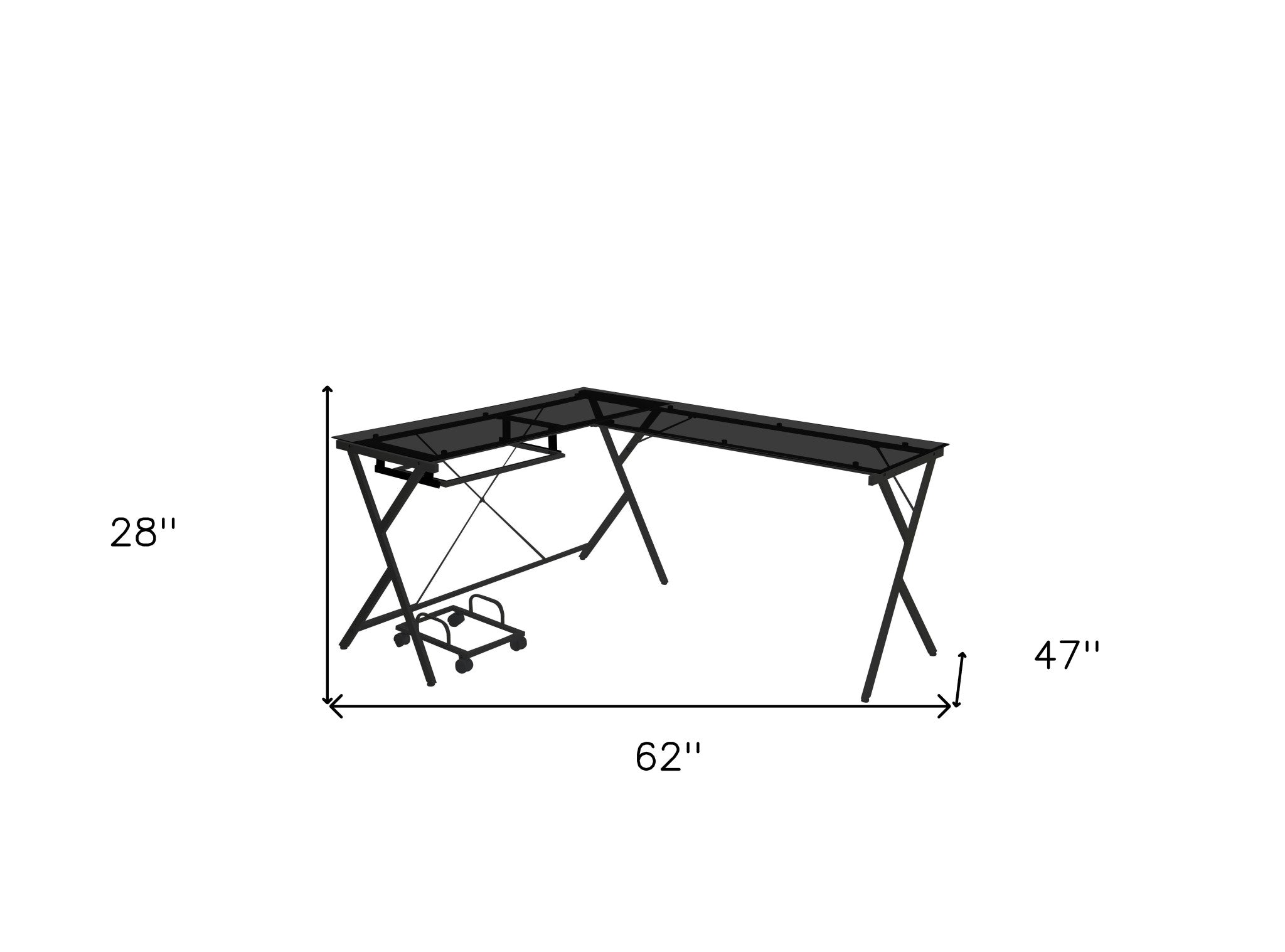 62" Black Glass L Shape Computer Desk