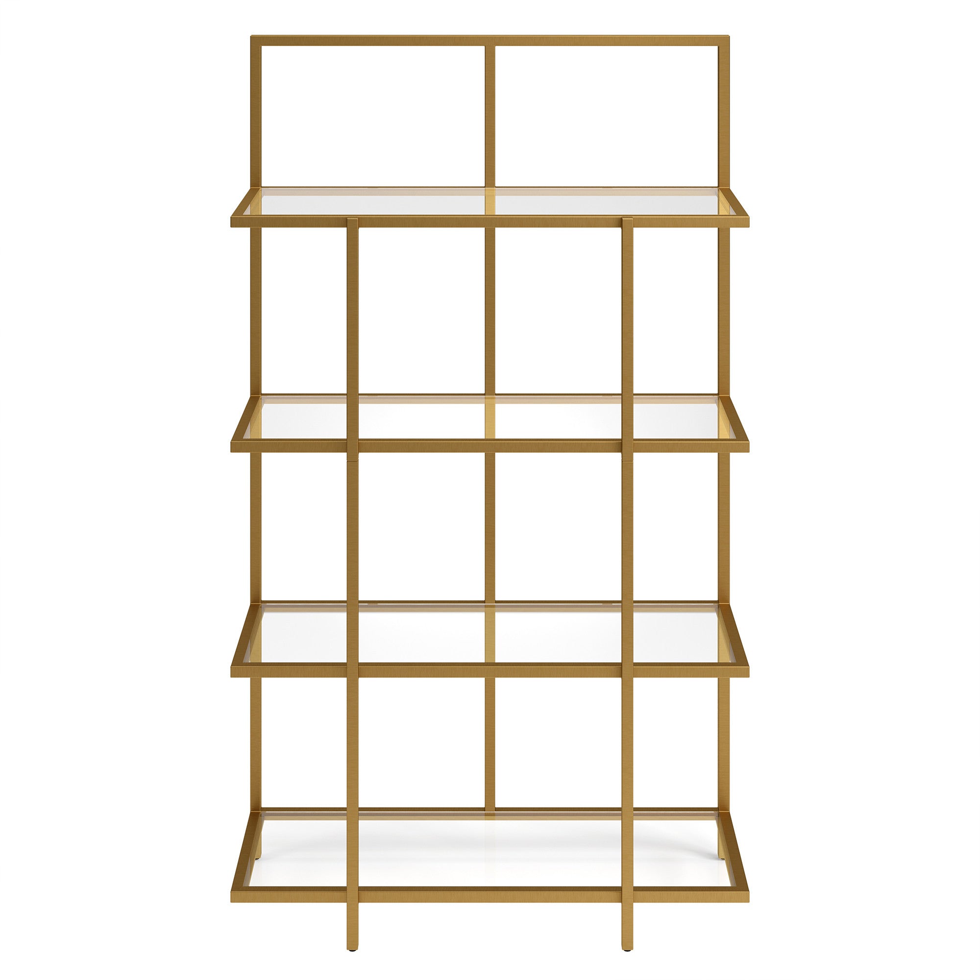 62" Gold Metal And Glass Four Tier Etagere Bookcase