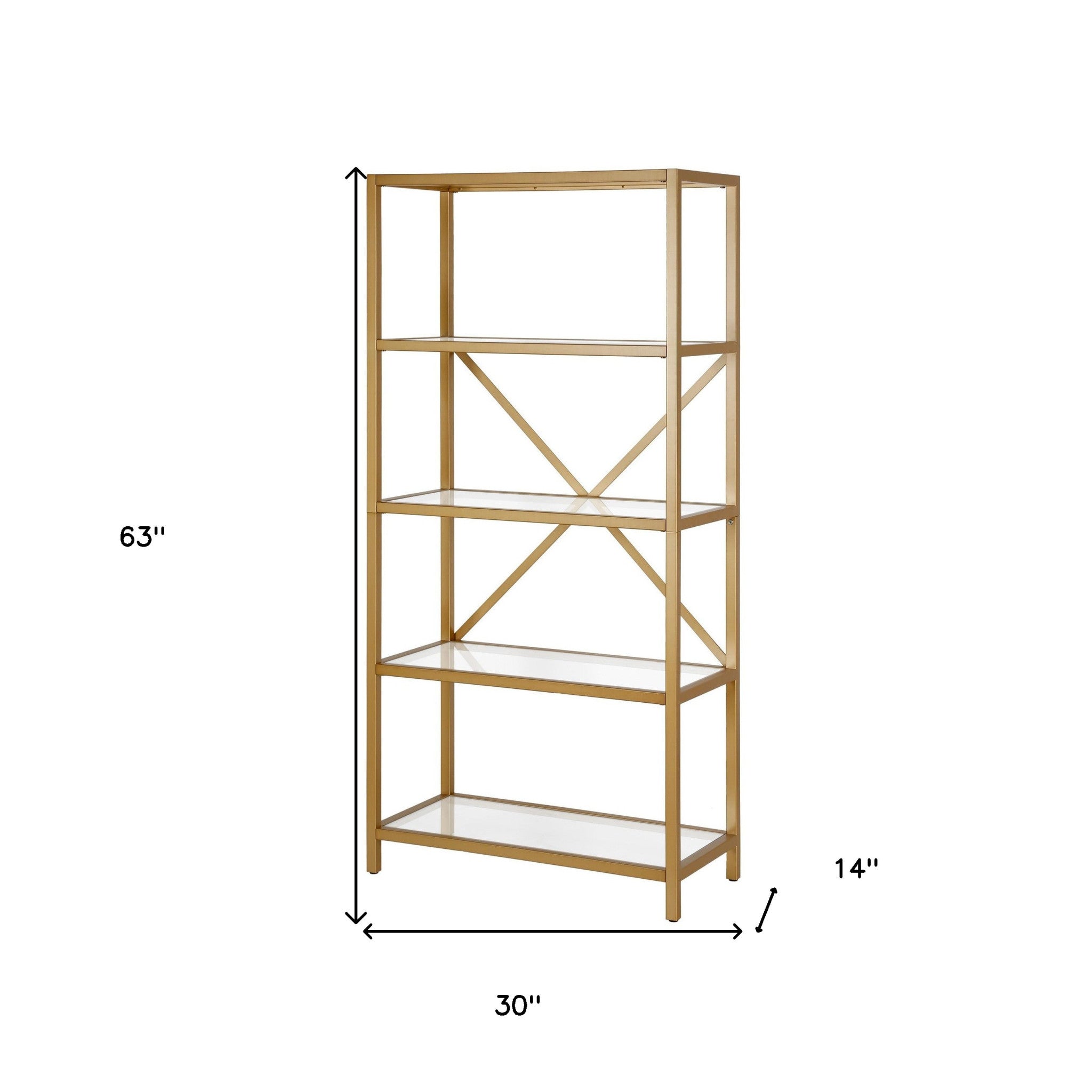 63" Gold Metal and Glass Five Tier Etagere Bookcase