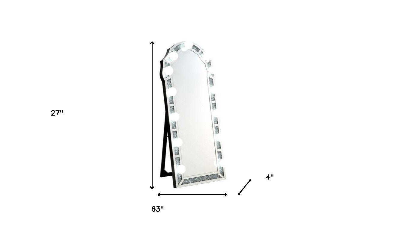 63" Mirrored & Faux Diamonds Cheval Standing Mirror