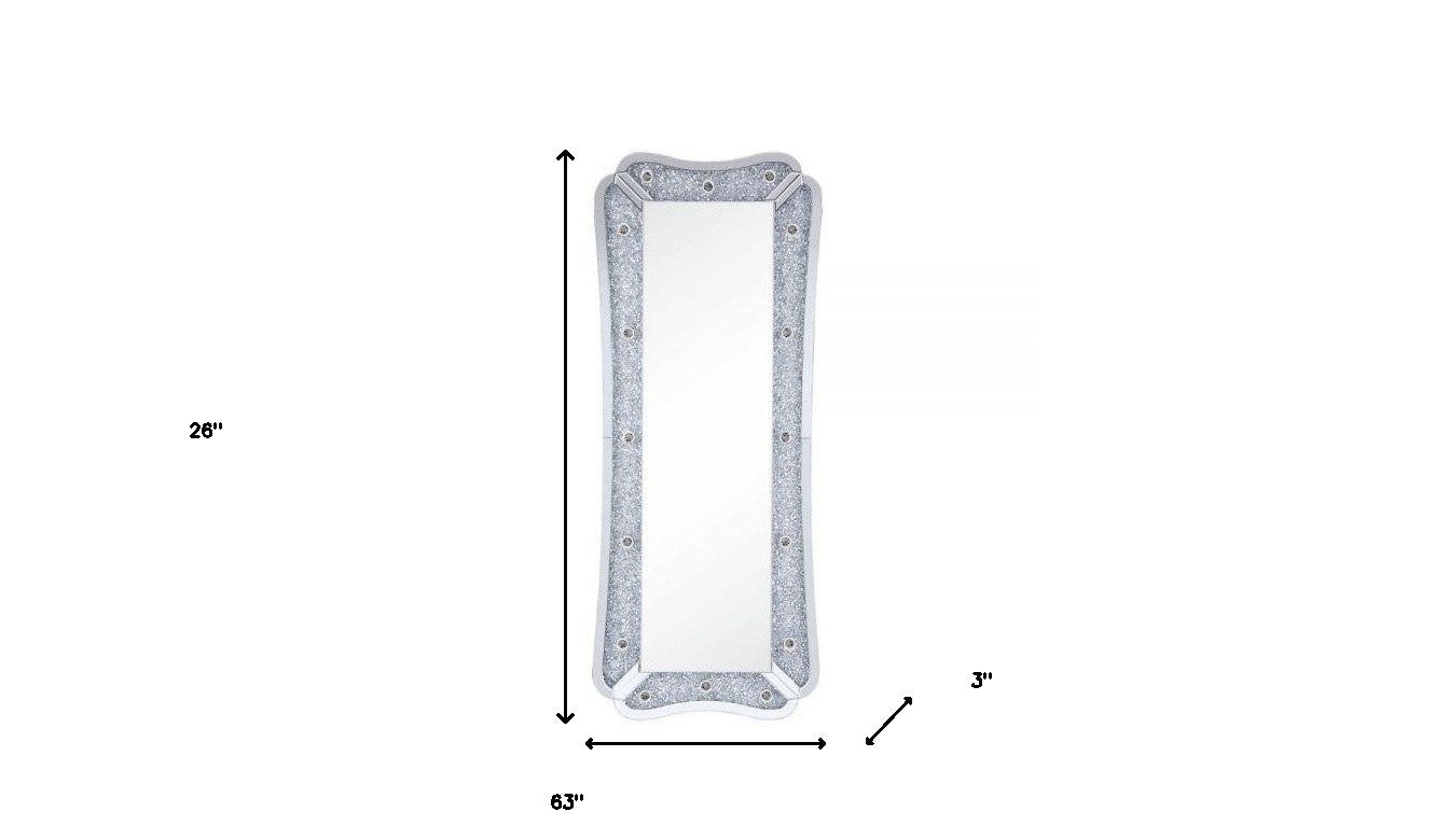 63" Mirrored & Faux Diamonds Lighted Accent Mirror