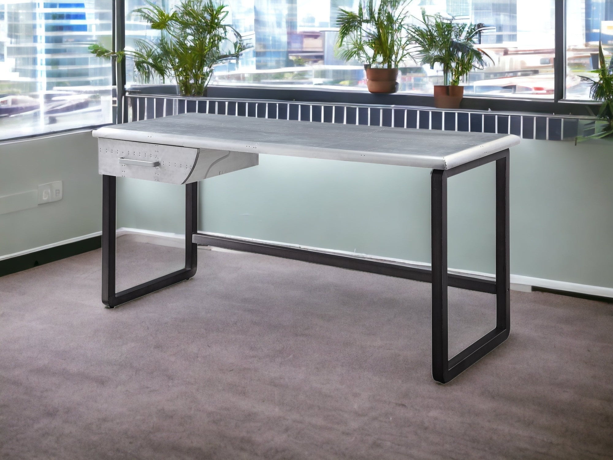 Bring this classic style 63-inch silver and black aluminum writing desk to your living room, home office...