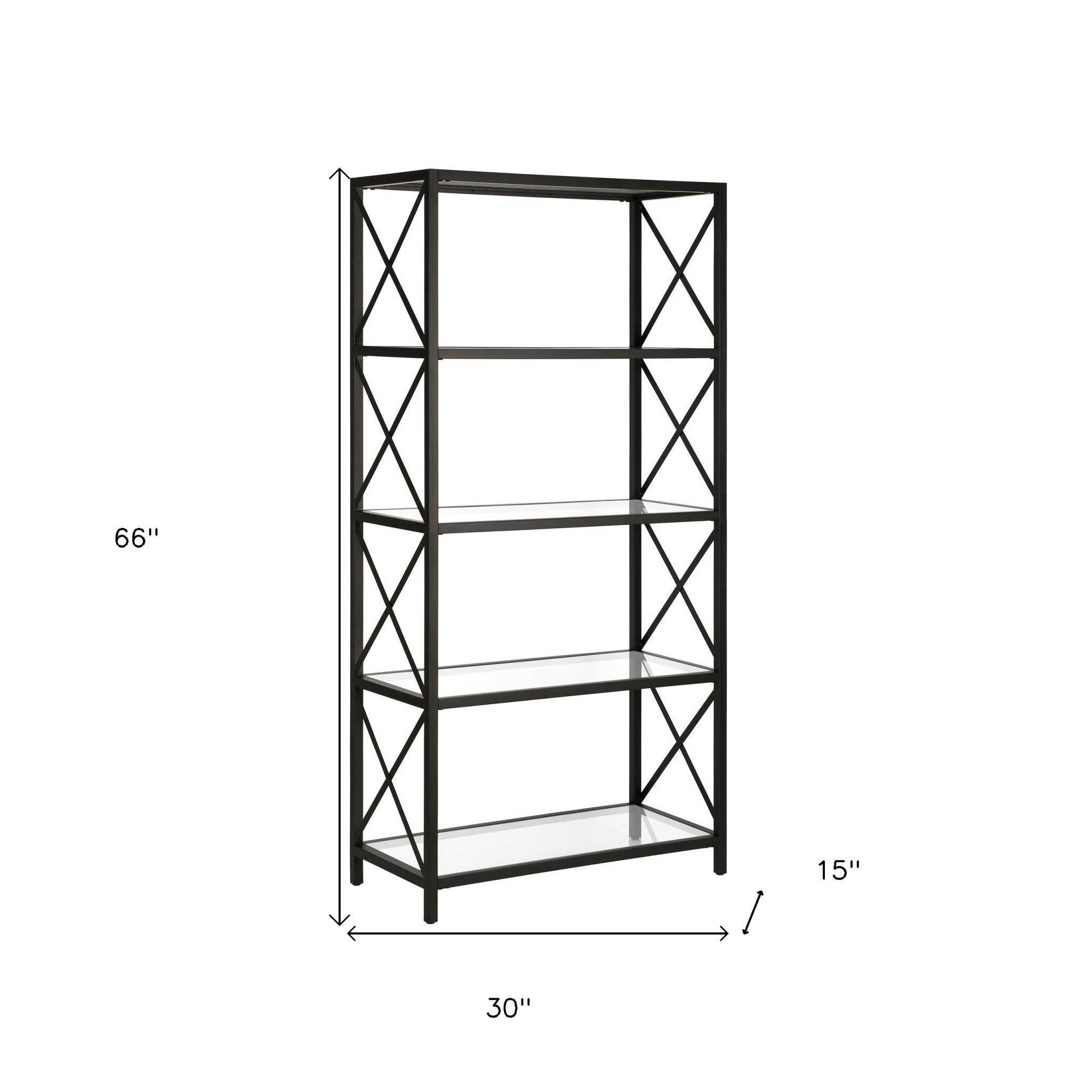 66" Black Metal and Glass Five Tier Etagere Bookcase
