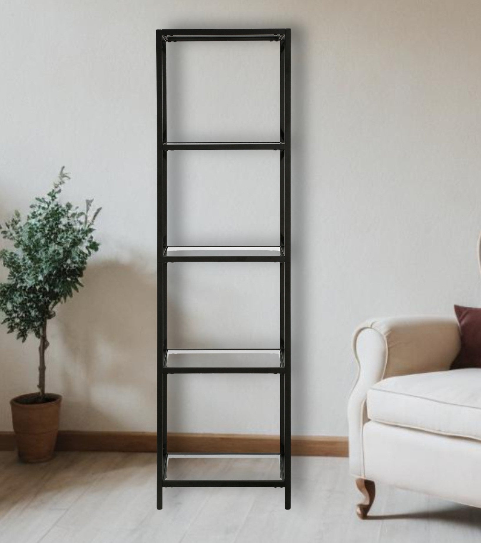 66" Black Metal And Glass Four Tier Etagere Bookcase