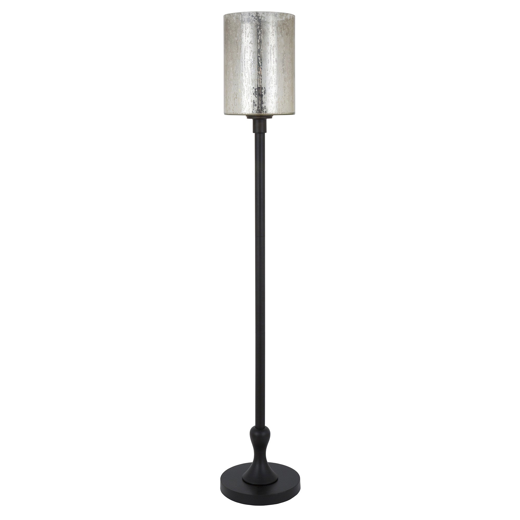 Add a bright anchor to your room with this 68" black torchiere floor lamp with clear transparent...