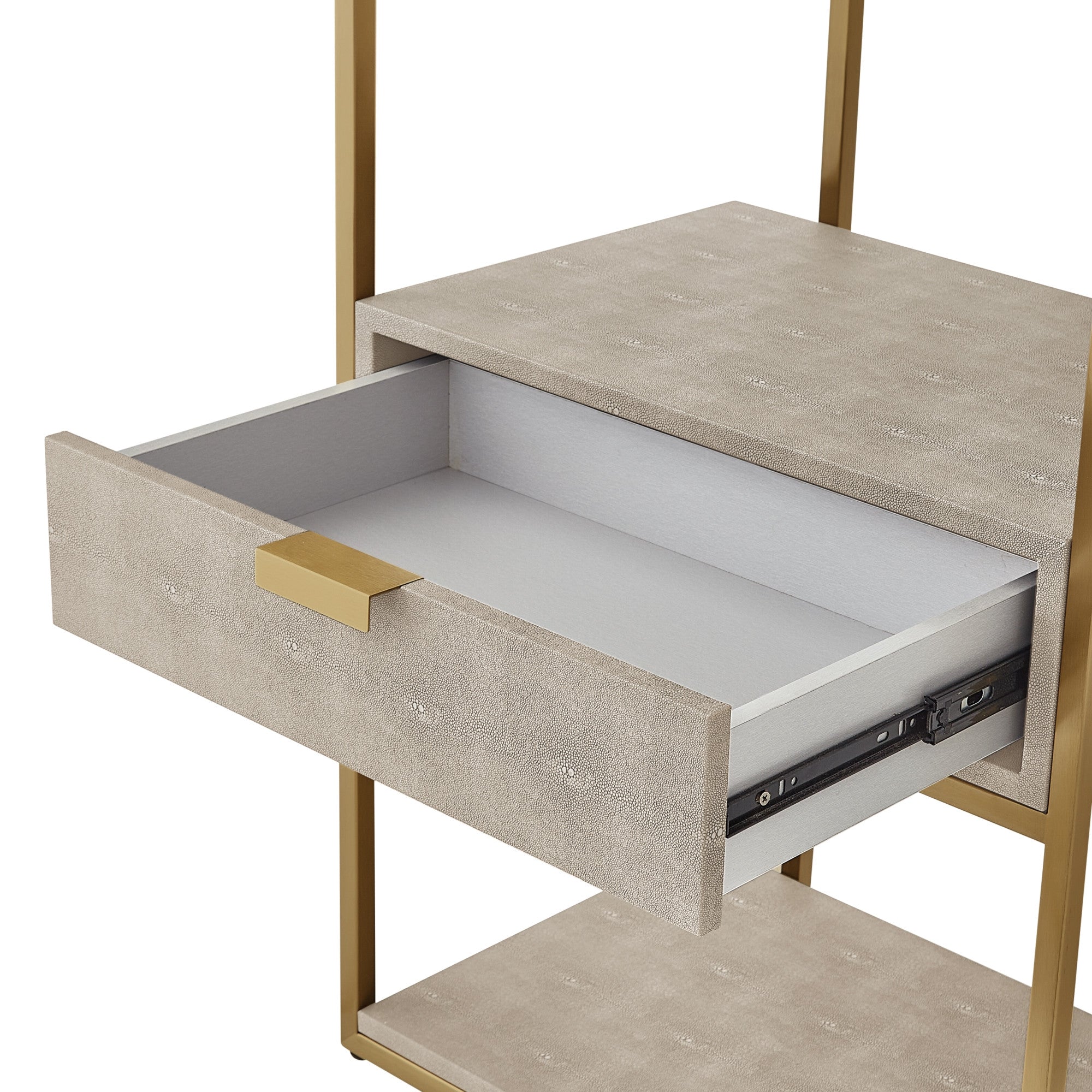 68" Cream Stainless Steel Four Tier Etagere Bookcase with a drawer