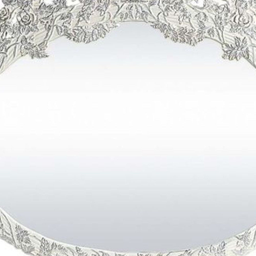 69" Antique White Finish Irregular Framed Dresser Mirror