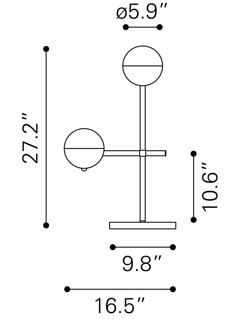 69" Brass Metal Bedside Table Lamp With Off White Globe Shade