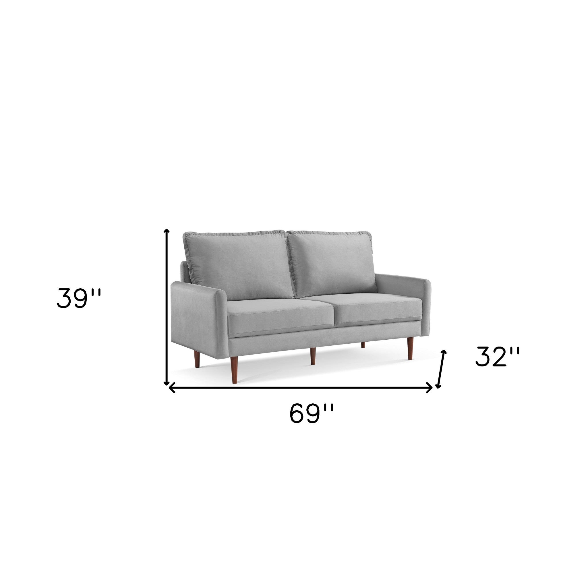 69" Gray Velvet and Dark Brown Sofa