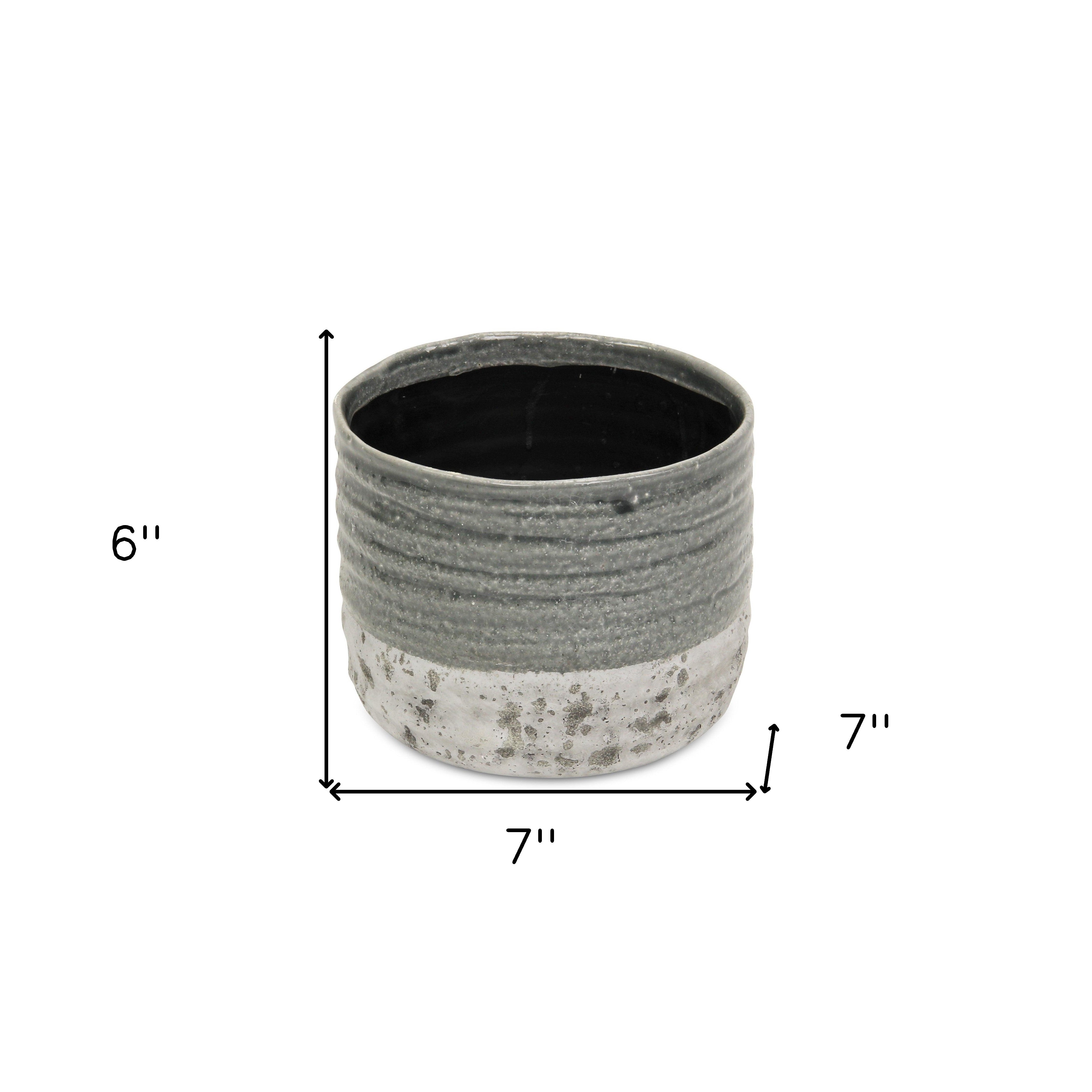 7" Gray and Off White Speckle Glaze Ceramic Indoor Outdoor Round Pot Planter