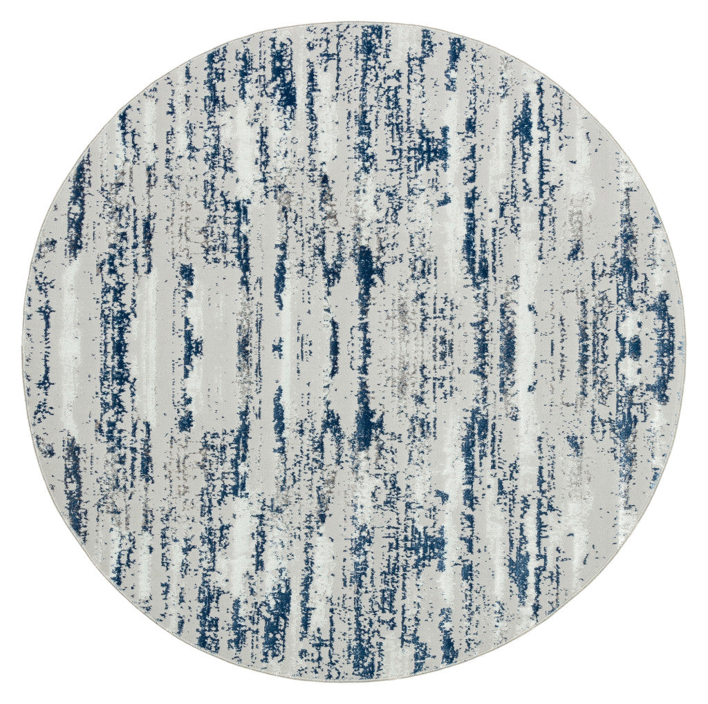 7' Navy Blue Round Abstract Washable Non Skid Area Rug
